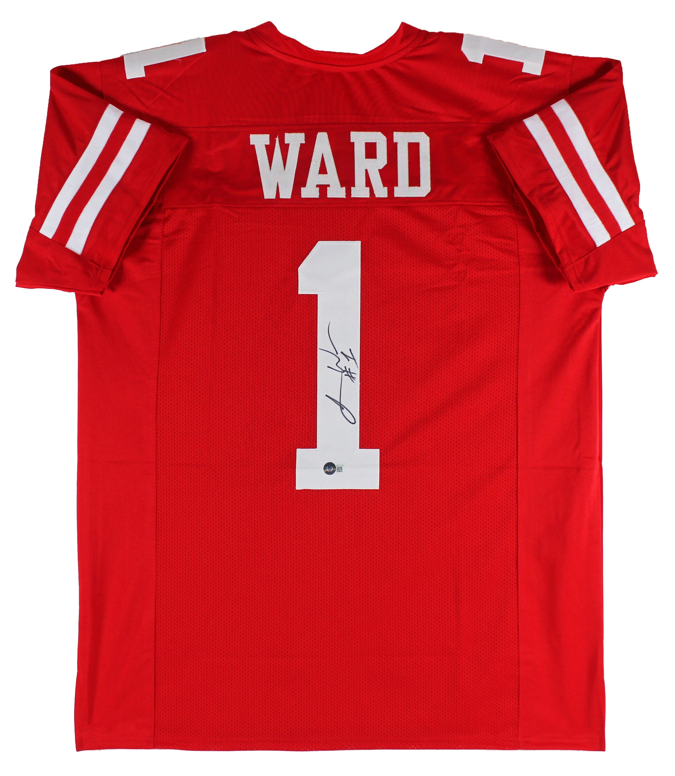 Custom jersey. Everything is sewn on, size XL. Hand-signed by Jimmie Ward.