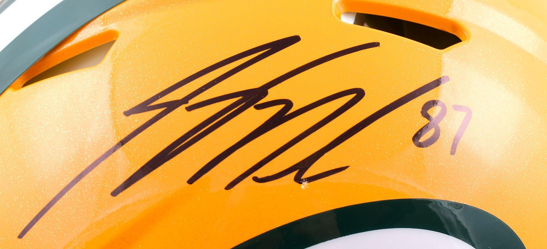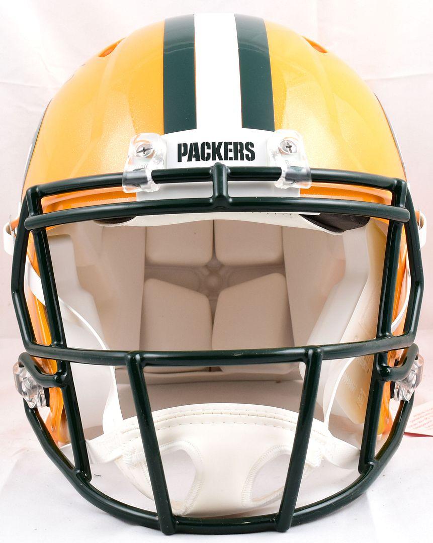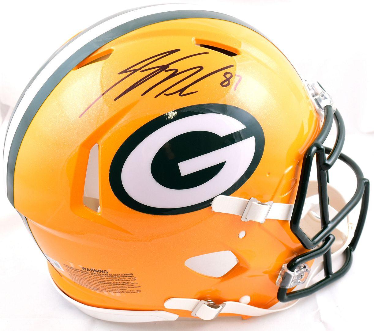 Riddell Green Bay Packers full-size authentic on-field speed helmet has been hand-signed by Jordy Nelson.