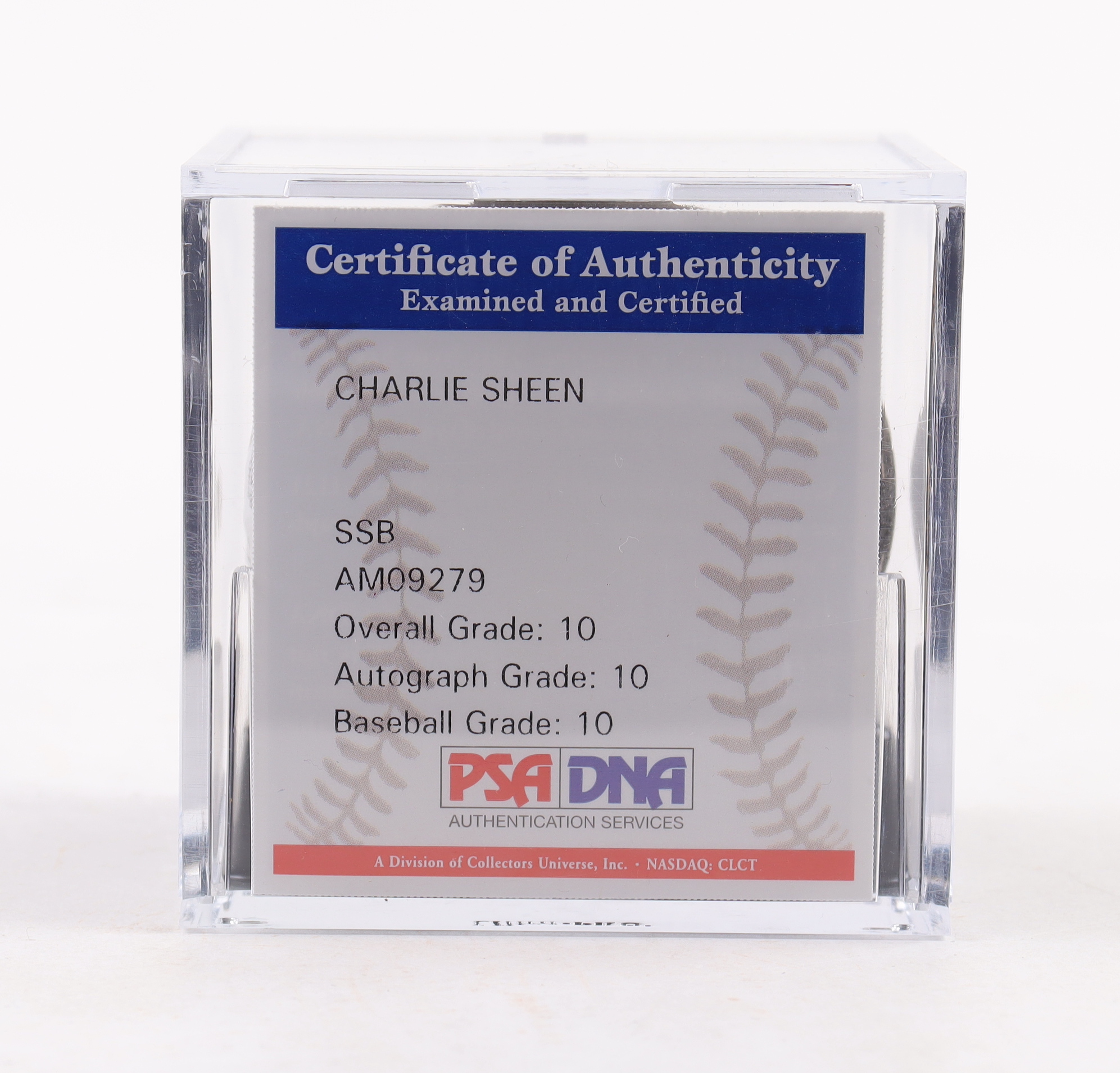 Charlie Sheen Signed Black Leather OML Baseball with Display Case (Beckett | Autograph Graded PSA 10)