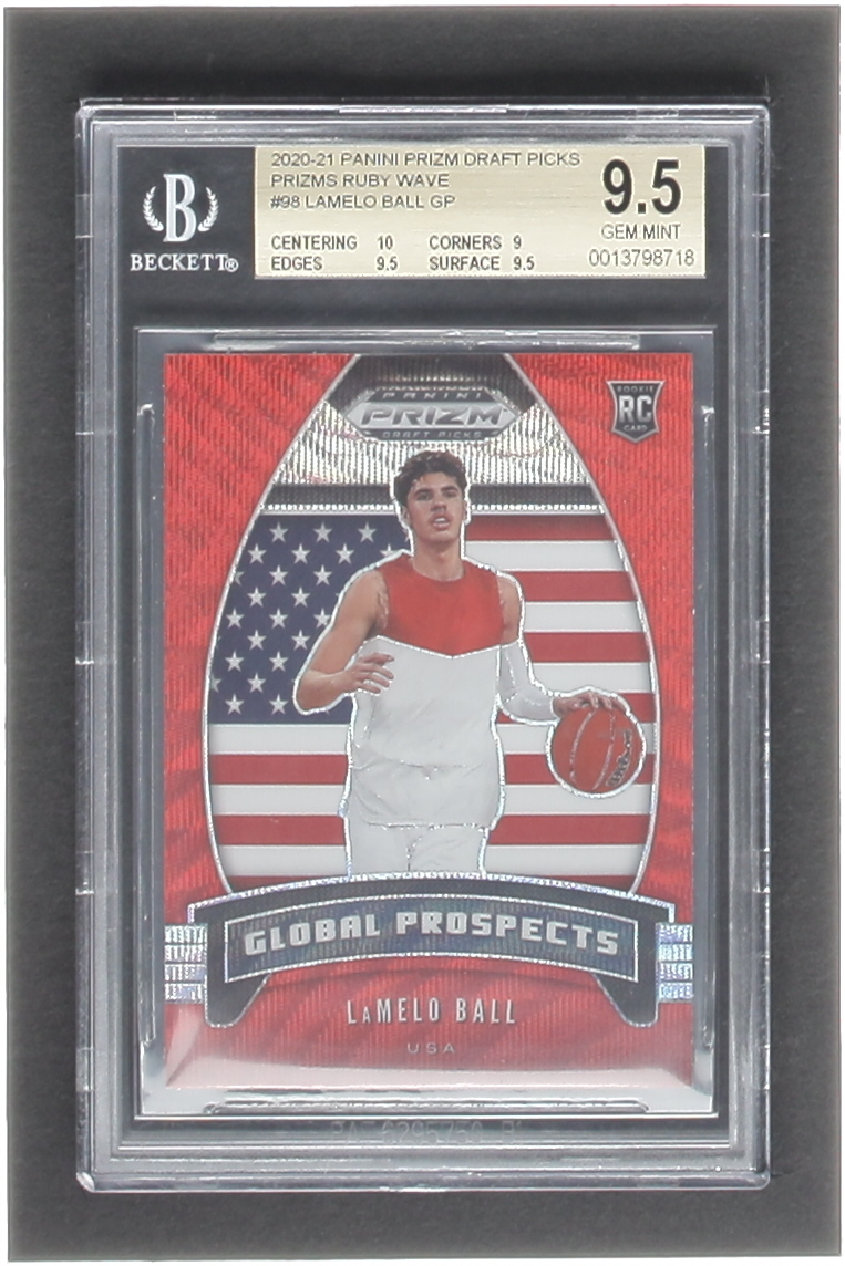 LaMelo Ball 2020-21 Panini Prizm Draft Picks Prizms Ruby Wave #98 GP (BGS 9.5)
