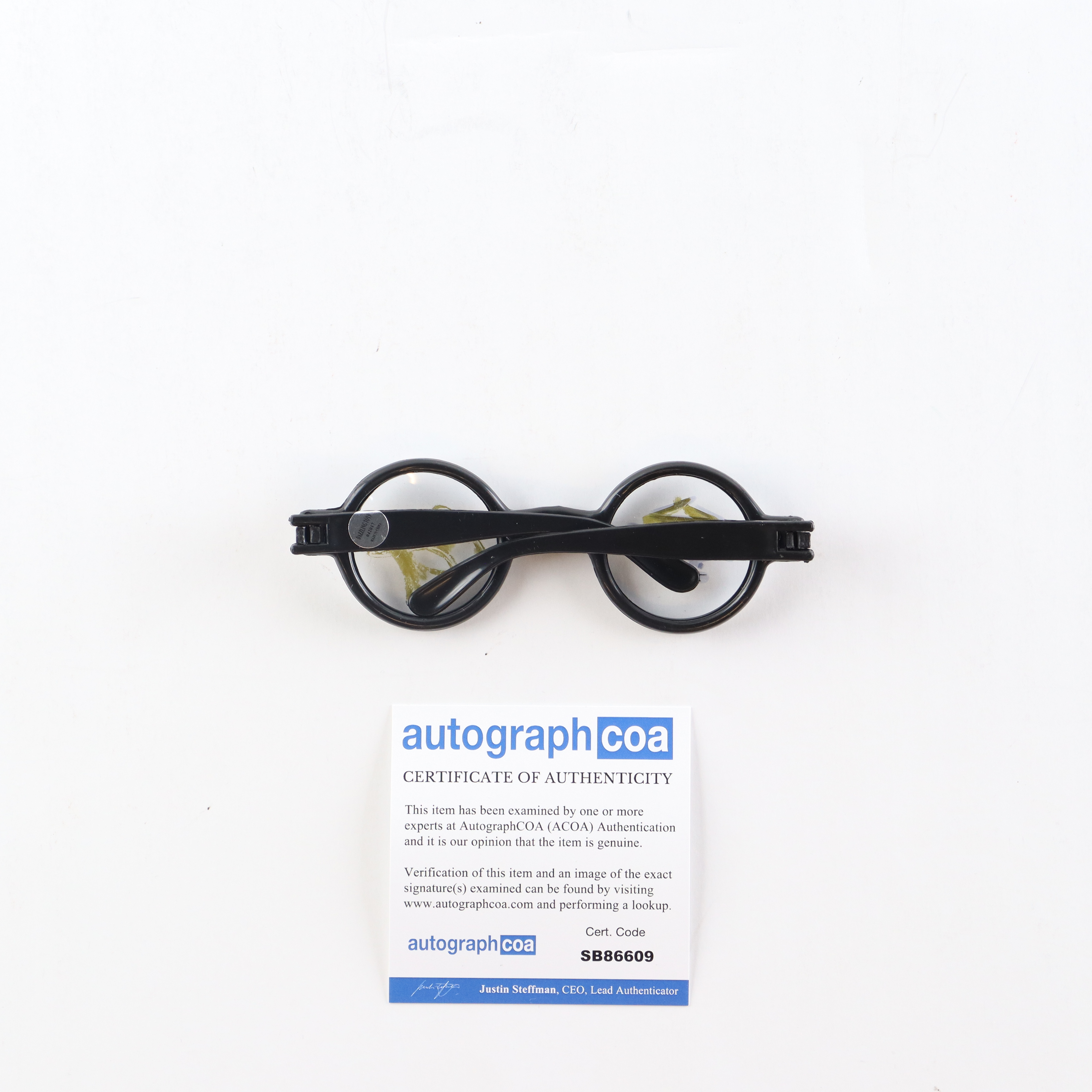 Plastic replica glasses has been hand-signed by Daniel Radcliffe (Harry Potter). Please note, there is scuffing on the autograph.