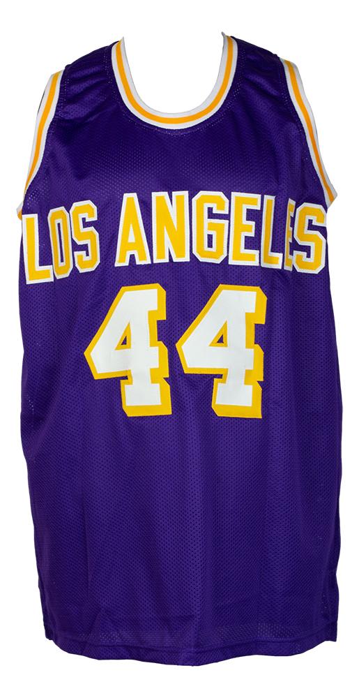 Custom on-court style jersey. Everything is sewn on, size XL. Hand-signed and inscribed by Jerry West (HOF).