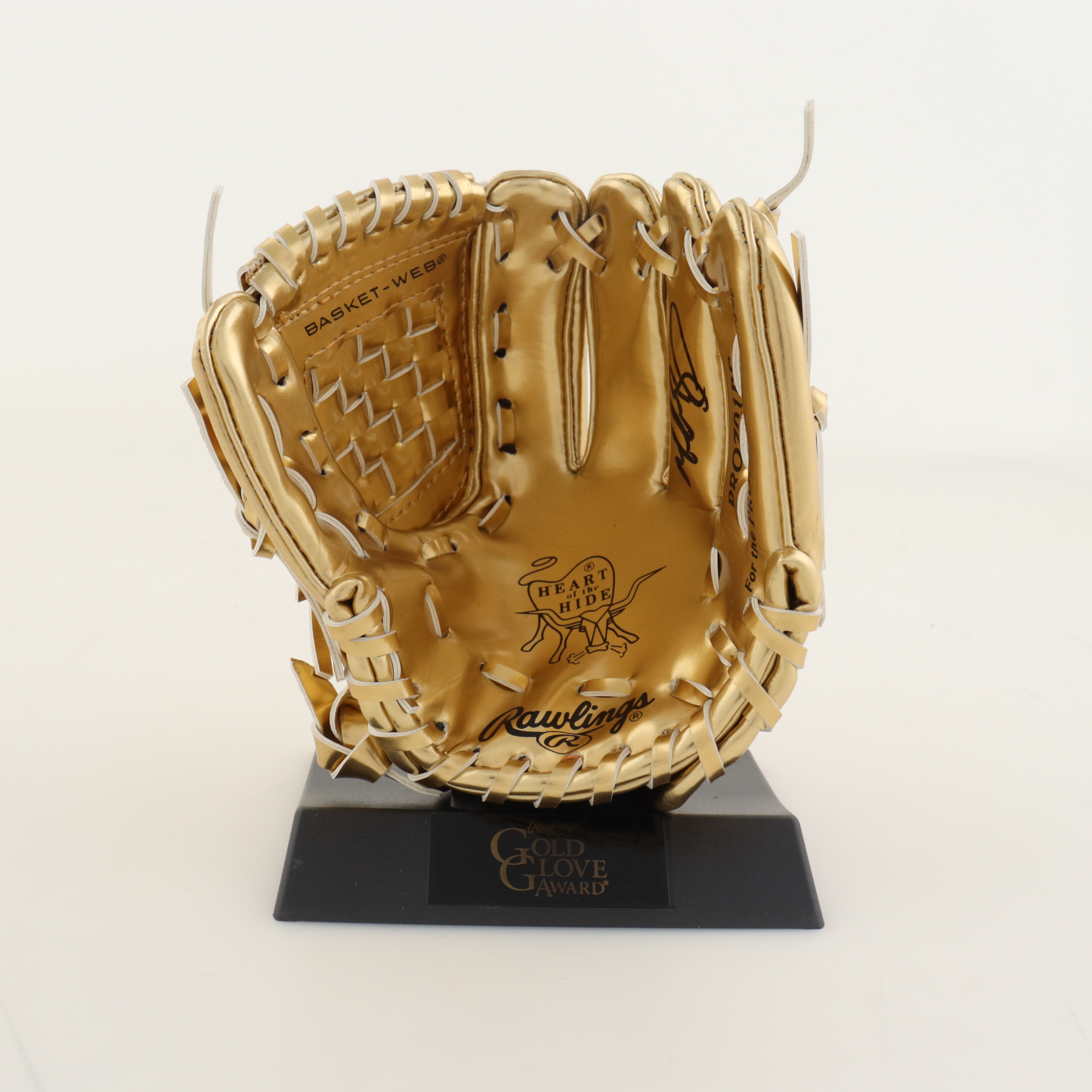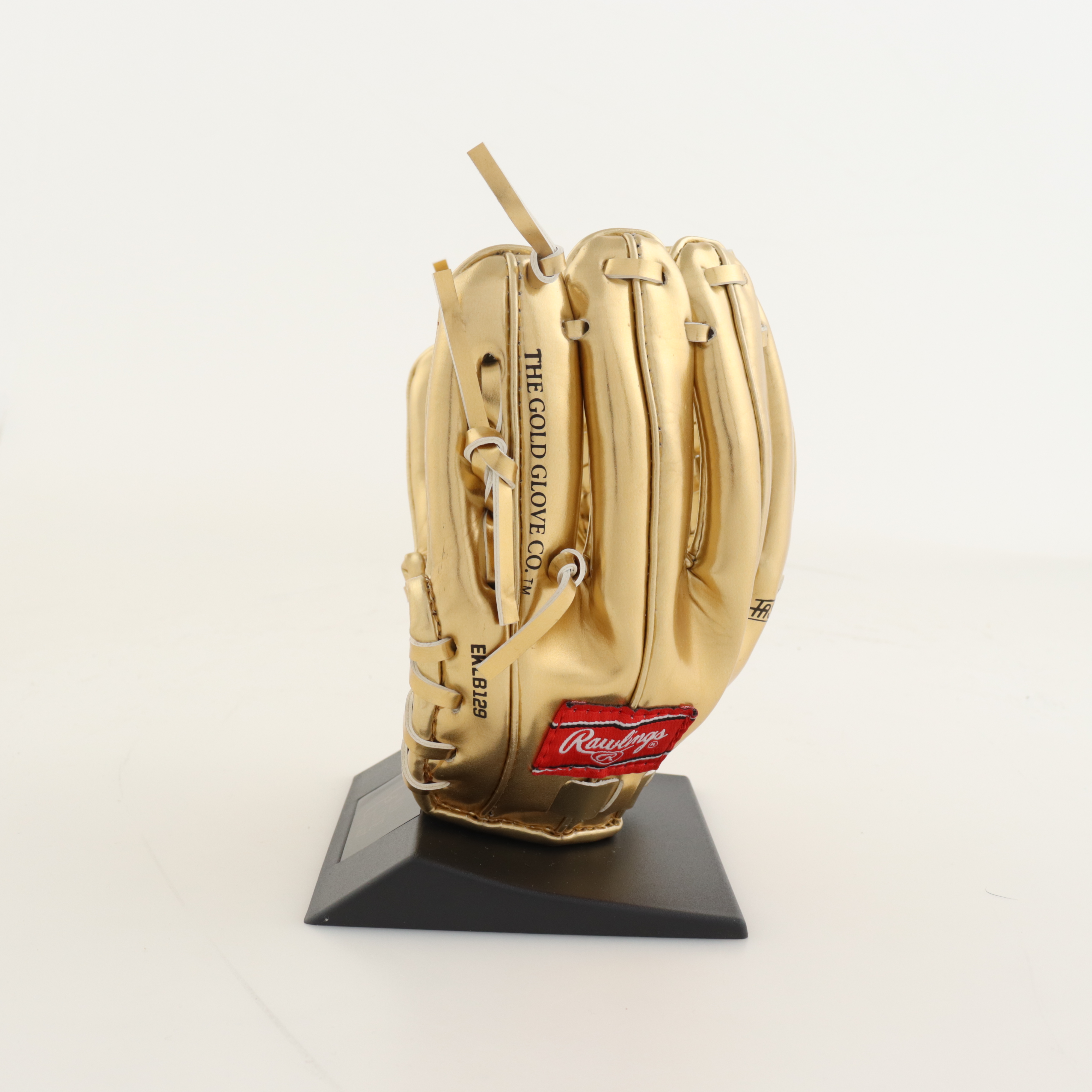 Rawlings gold mini baseball glove. Hand-signed by Mookie Betts (Boston Red Sox).
