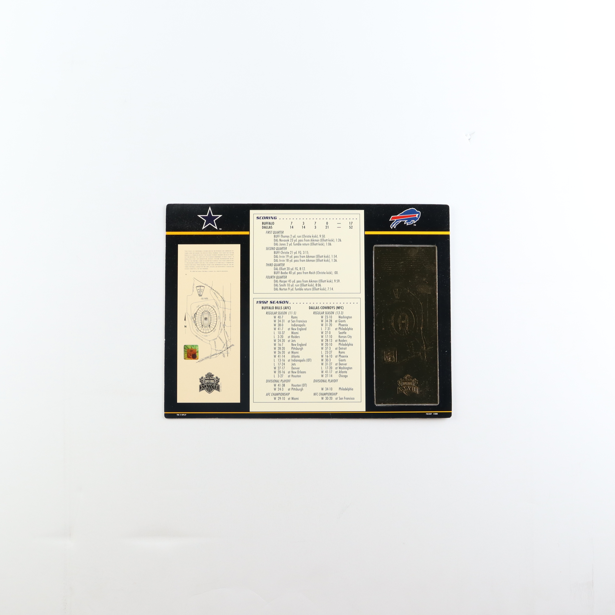 Super Bowl XXVII Commemorative 9x12 Score Card Display with 23kt Gold Ticket