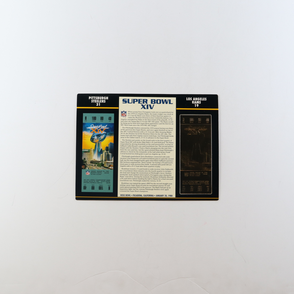 Super Bowl XIV Commemorative 9x12 Score Card Display with 23kt Gold Ticket