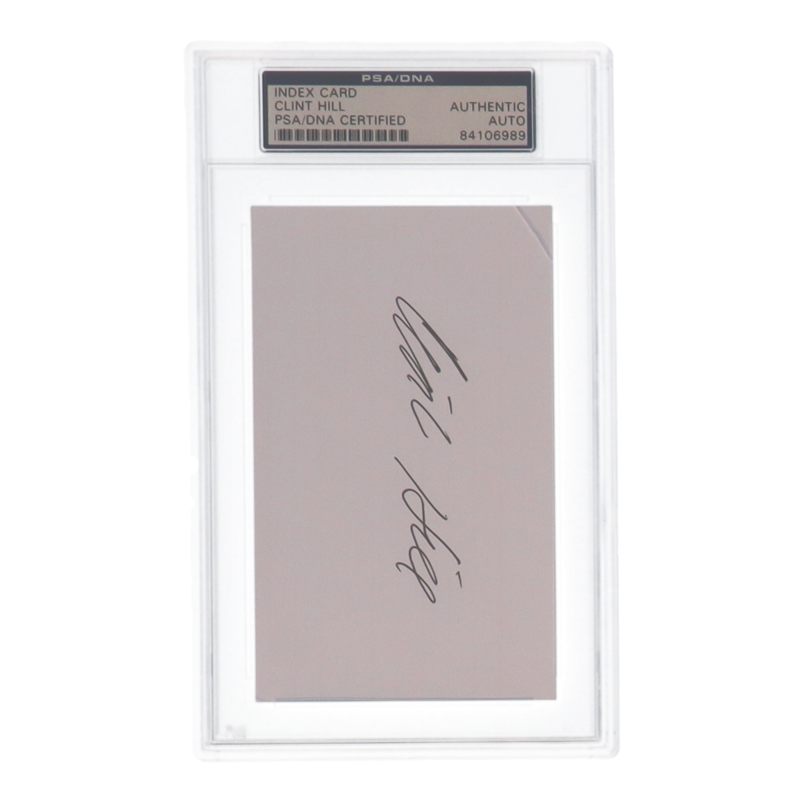 Cut measures 3" x 5" in size and has been hand signed by Clint Hill.