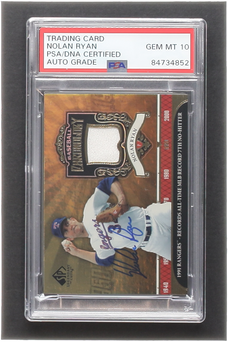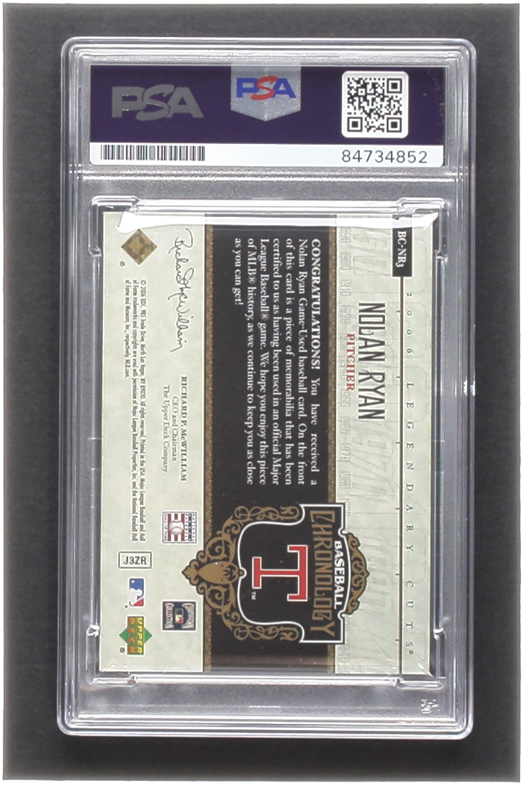 Nolan Ryan Signed 2006 SP Legendary Cuts Baseball Chronology Materials #NR3 / 7th No-Hitter JSY (PSA | Autograph Graded 10)