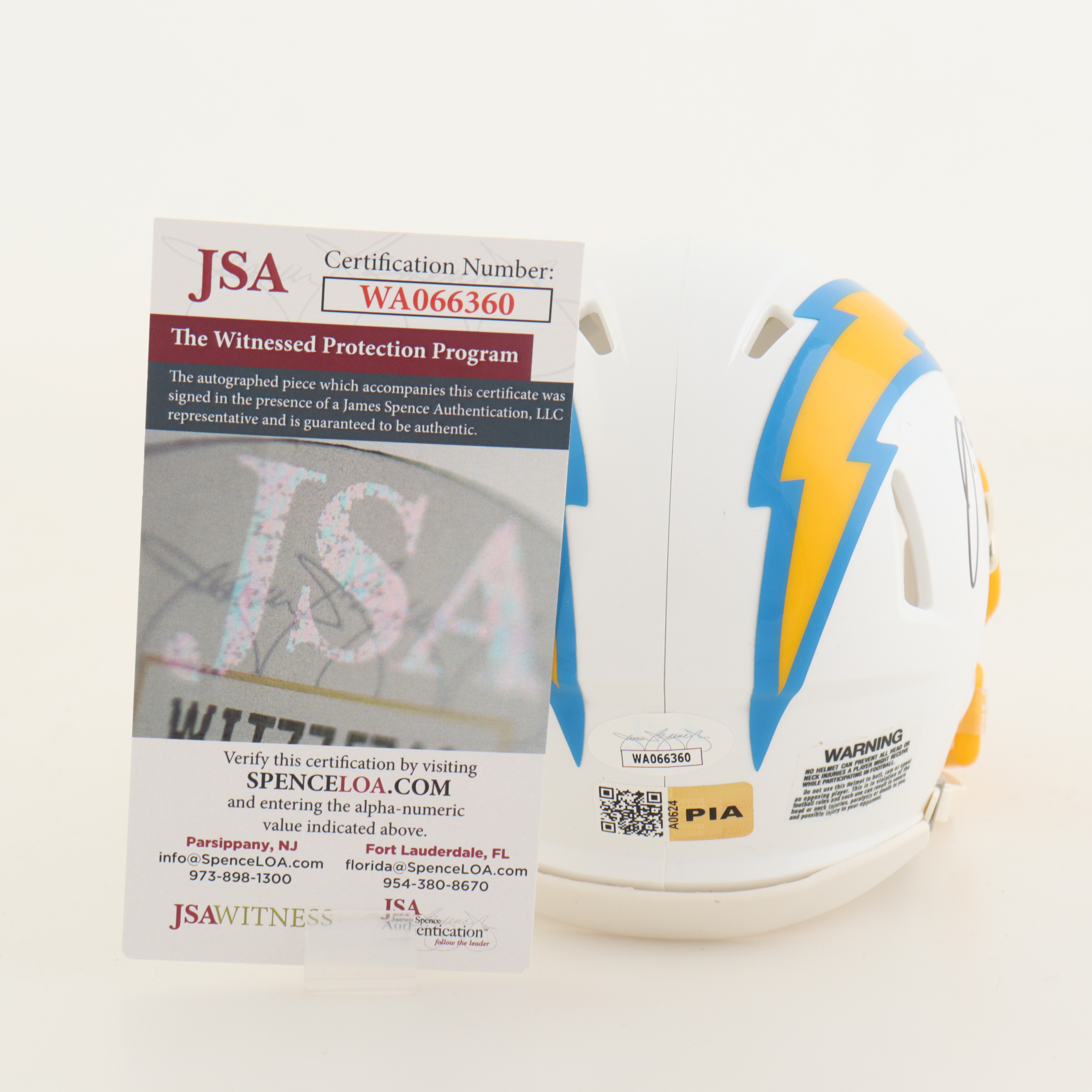 Riddell Los Angeles Chargers Speed mini helmet. Hand-signed by J.C. Jackson.