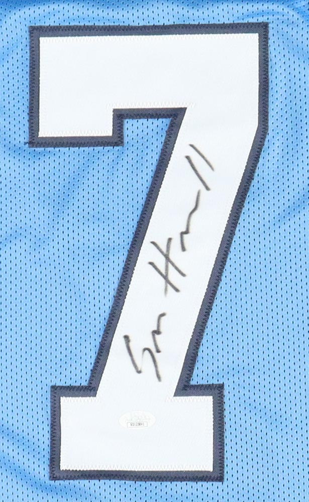 Custom on-field style jersey. Everything is sewn on, size XL. Hand-signed by Sam Howell.