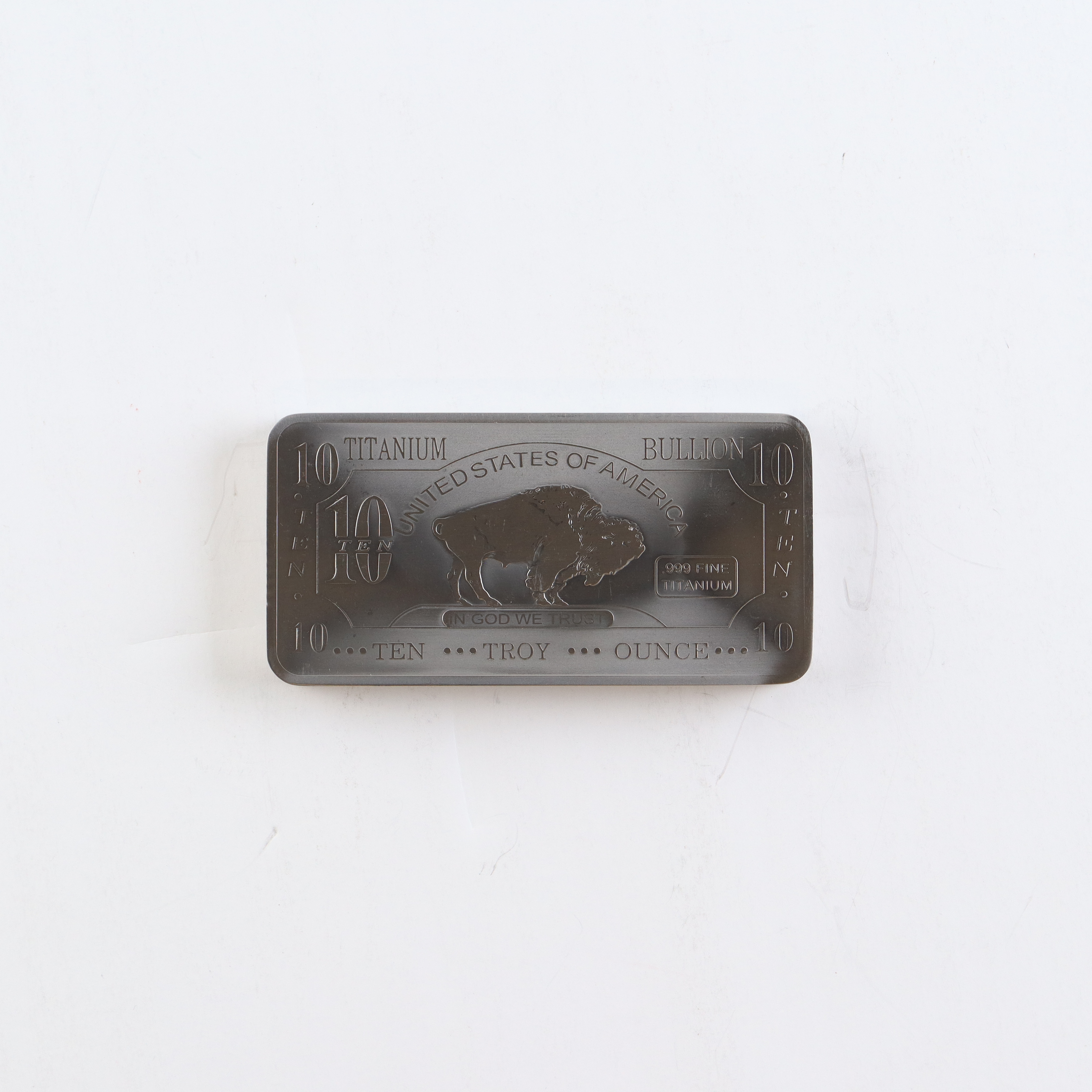 Ten Troy Ounce "Buffalo" .999 Fine Titanium Bullion Bar