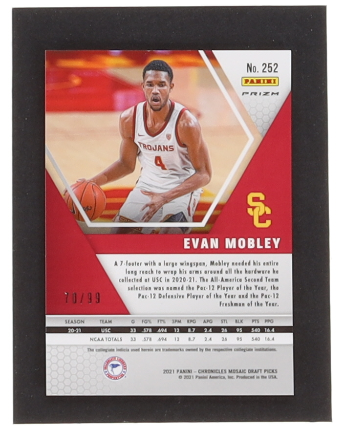 Evan Mobley 2021-22 Panini Chronicles Draft Picks Blue #252 RC / Mosaic #70/99