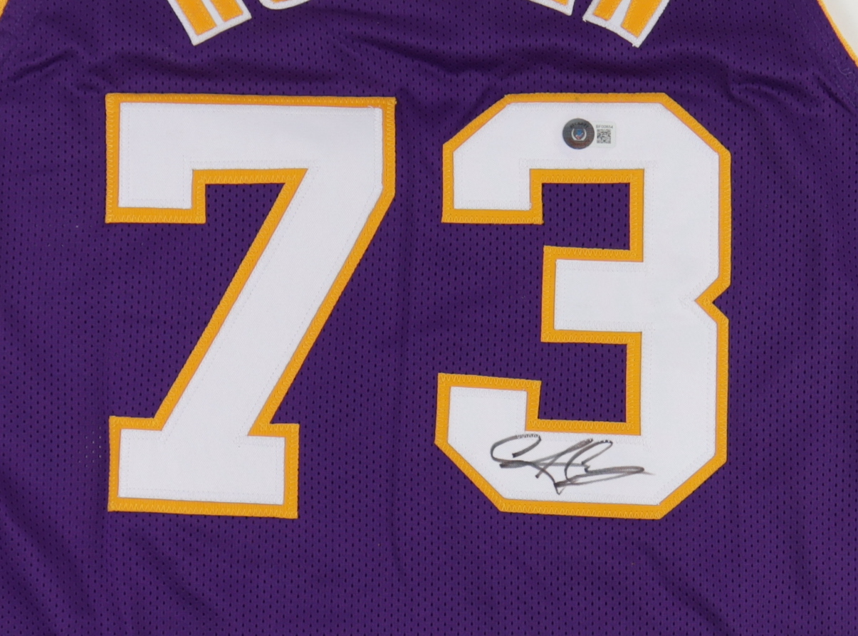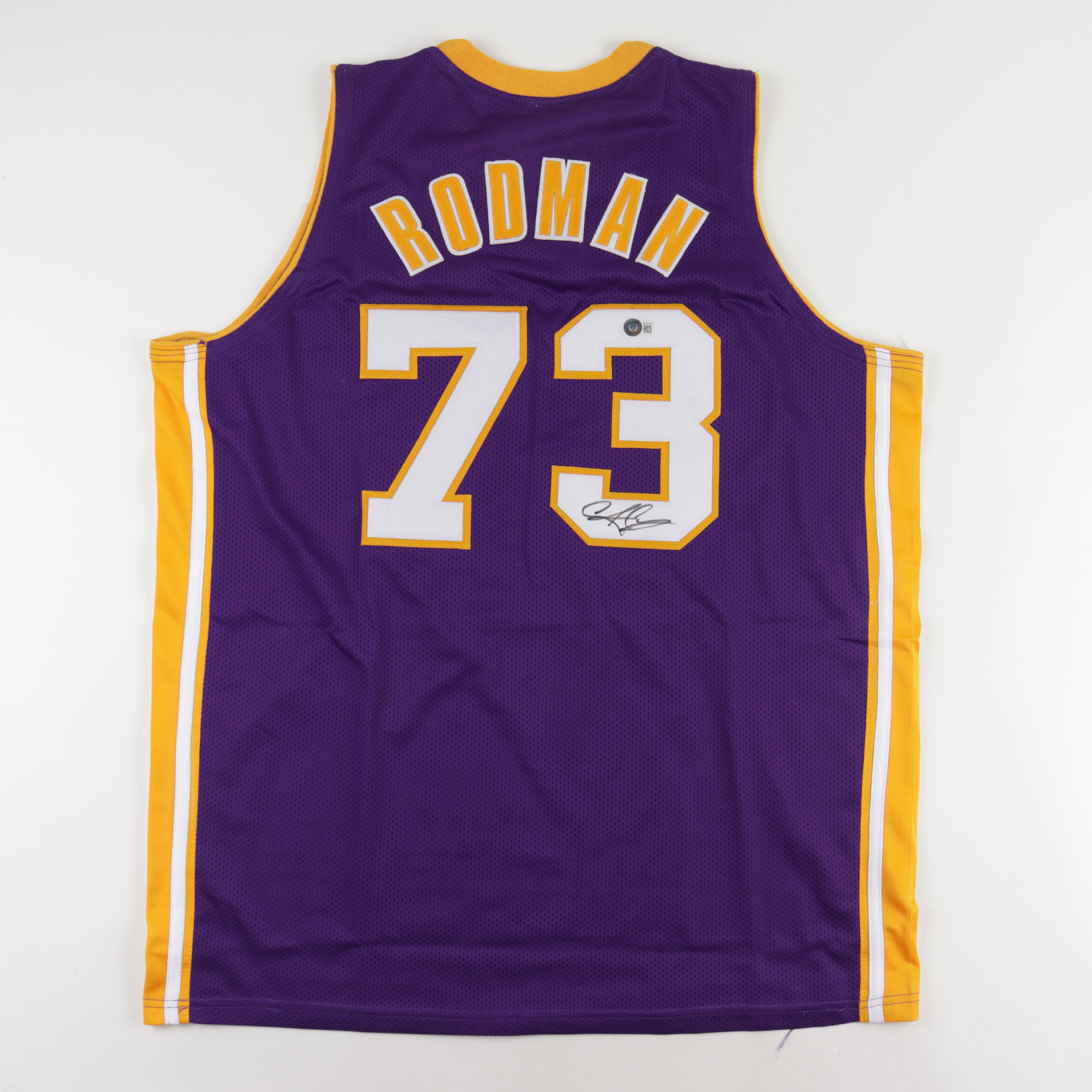 Custom on-court style jersey. Everything is sewn on, size XL. Hand-signed by Dennis Rodman (HOF).
