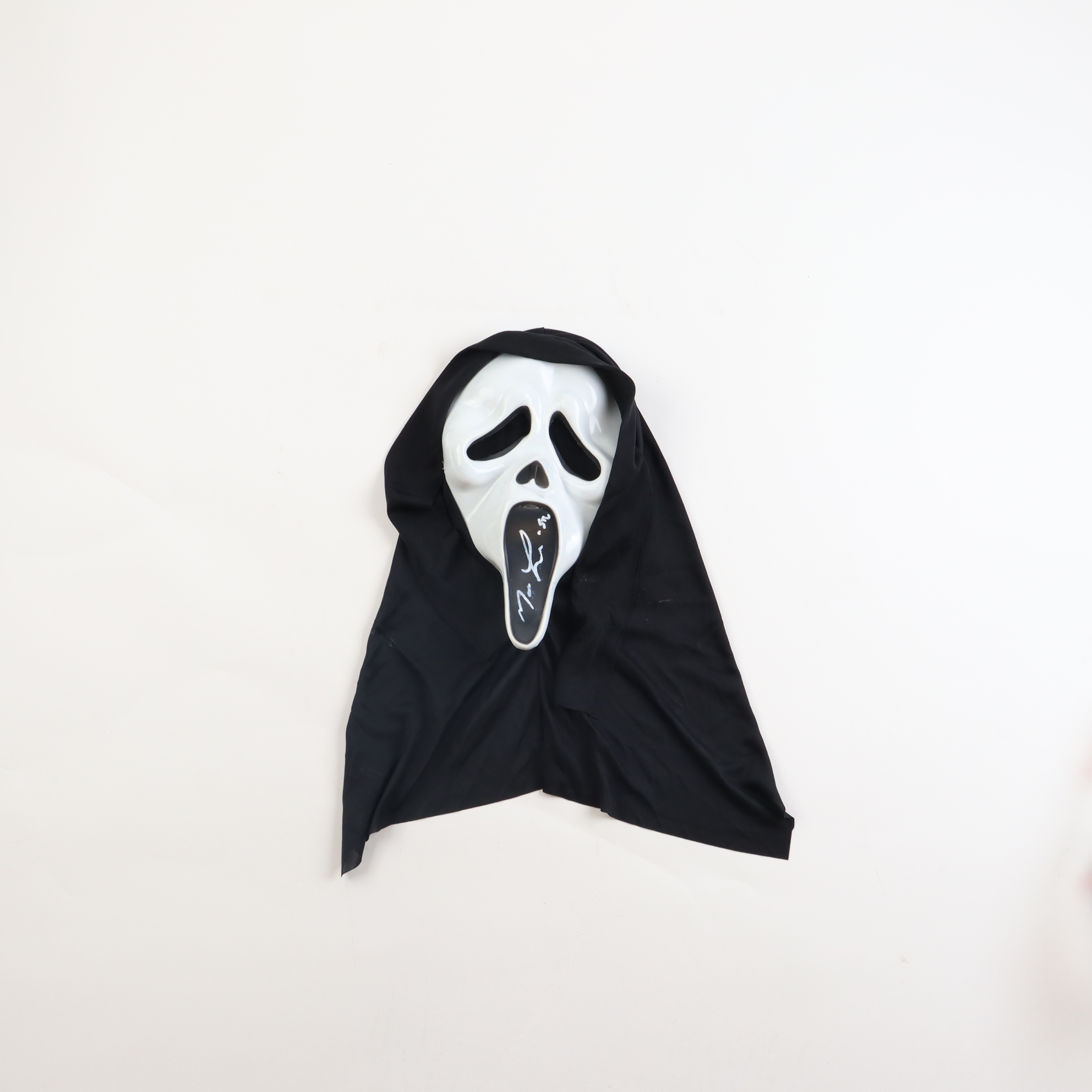 "Scream" Ghostface mask has been hand-signed and inscribed by Matthew Lillard (Stu Macher). Please note, the autograph is smudged.