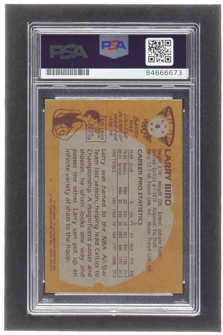 Larry Bird Signed 1981-82 Topps #4 (PSA)