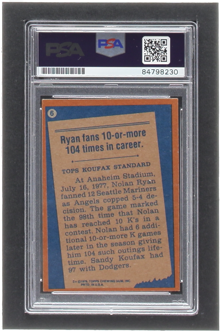 Nolan Ryan Signed 1978 Topps #6 RB (PSA | Autograph Graded PSA 8)