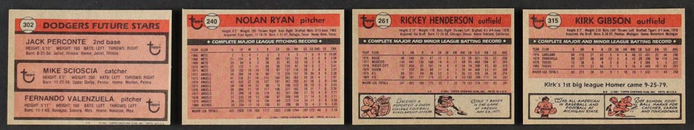 1981 Topps Baseball Complete Set of (726) Cards with Jack Perconte / Mike Scioscia / Fernando Valenzuela #302 RC, Kirk Gibson #315 RC, Nolan Ryan #240