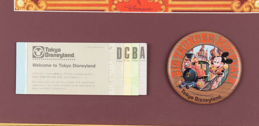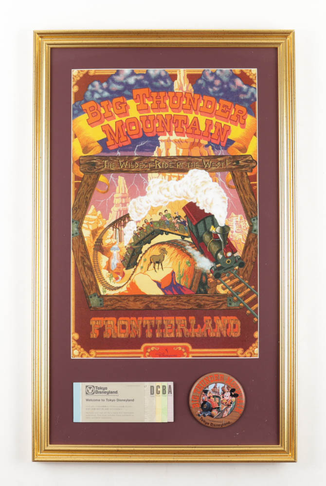 Disneyland "Big Thunder Mountain Railroad" Custom Framed Poster Print with Vintage Disneyland Ticket Book & Tokyo Disneyland Pin