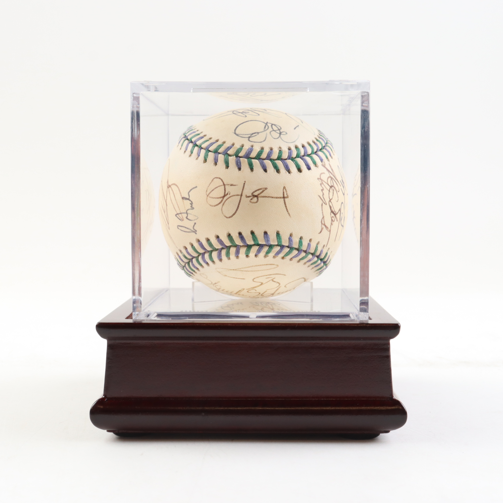 1998 AL All-Star Game Baseball Signed by (28) with Tony Gwynn, Chipper Jones, Greg Maddux, Mike Piazza with Display Case (PSA)