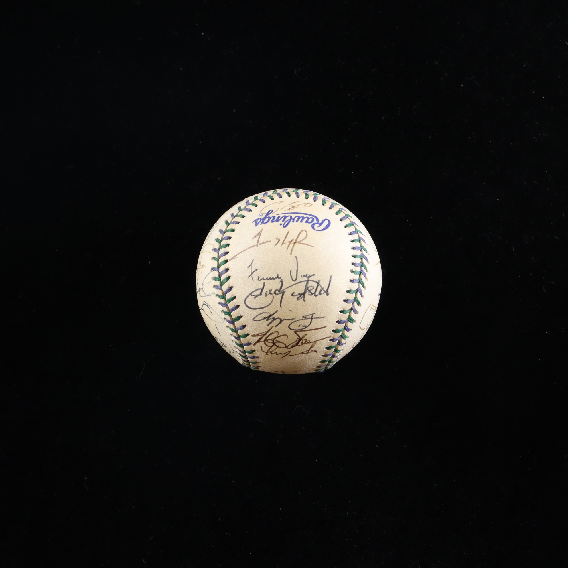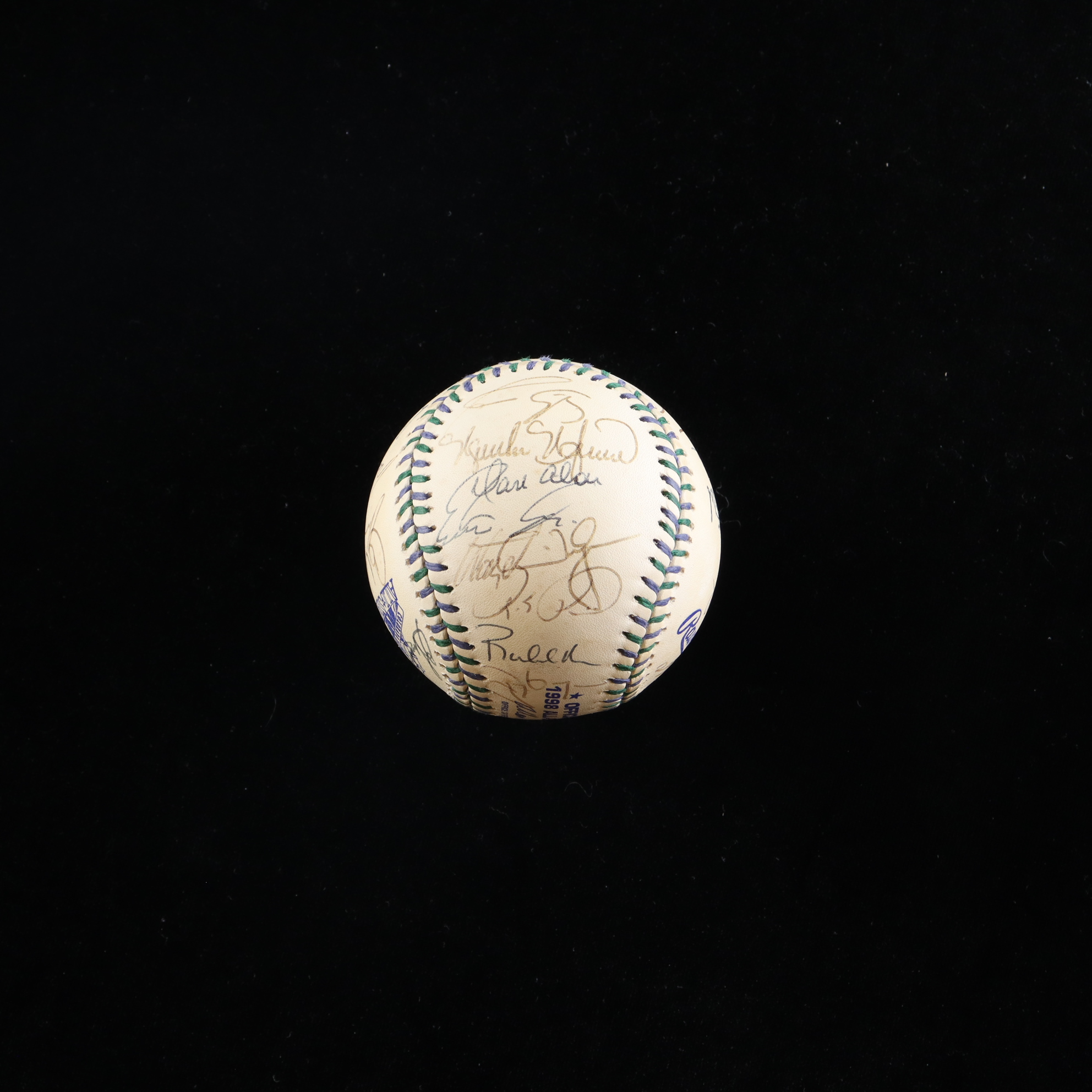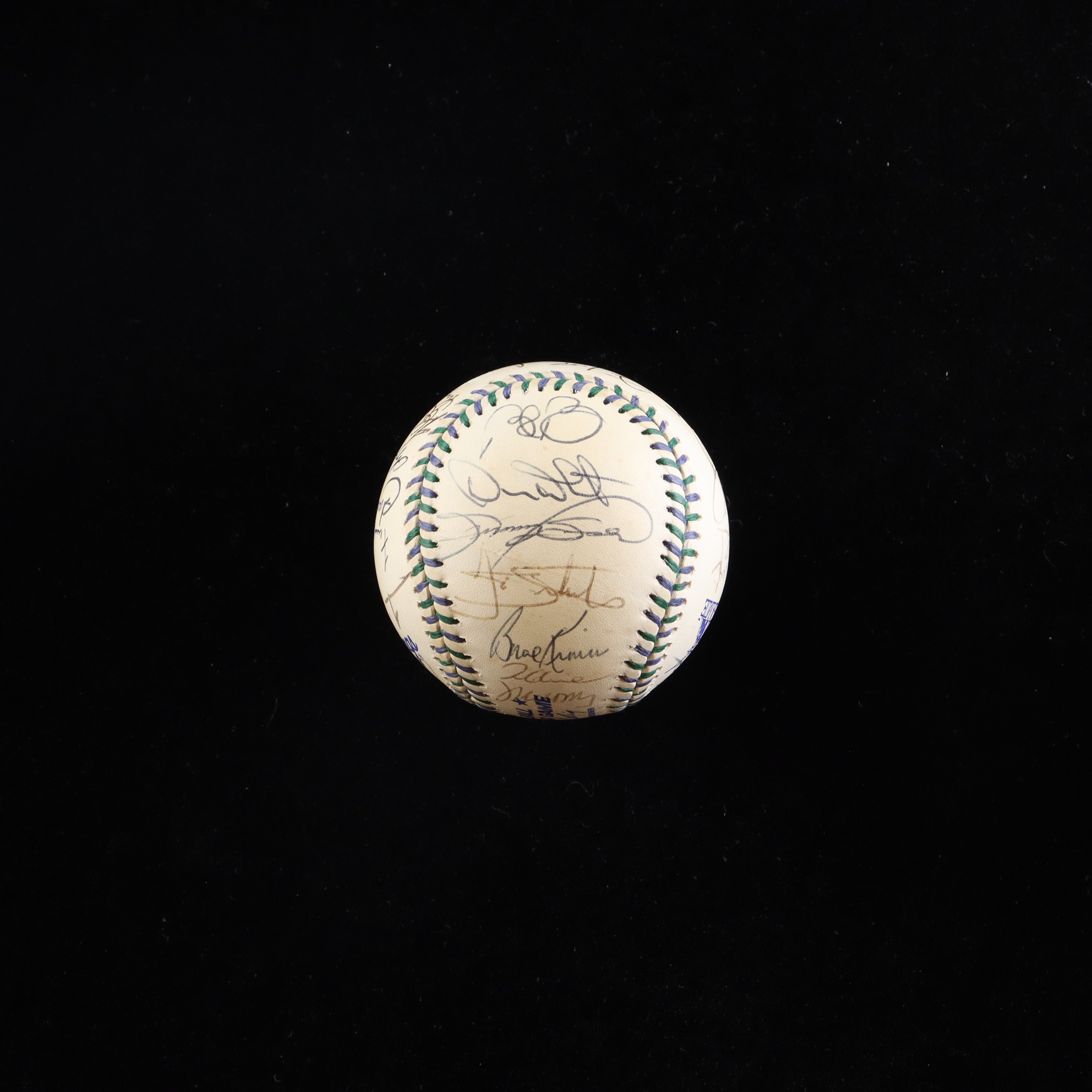 Rawlings Official 1998 All-Star Game baseball. Hand-signed by (28) with Jim Leyland, Sammy Sosa, Dante Bichette, Mark McGwire, Kevin Brown, Gary Sheffield, Tom Glavine, Tony Gwynn, Trevor Hoffman, Chipper Jones, Greg Maddux, Mike Piazza and (16) others.