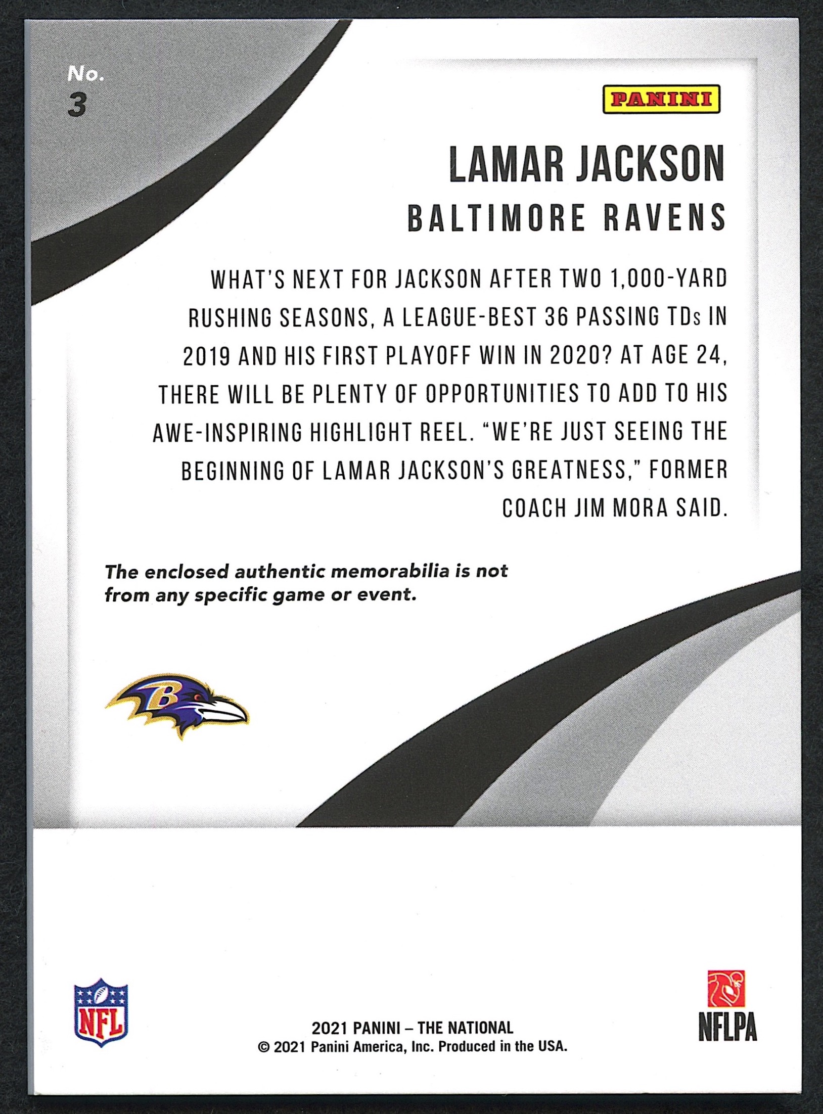 Lamar Jackson 2021 Panini National Convention Memorabilia Escher Squares #3 Patch Relic #03/10