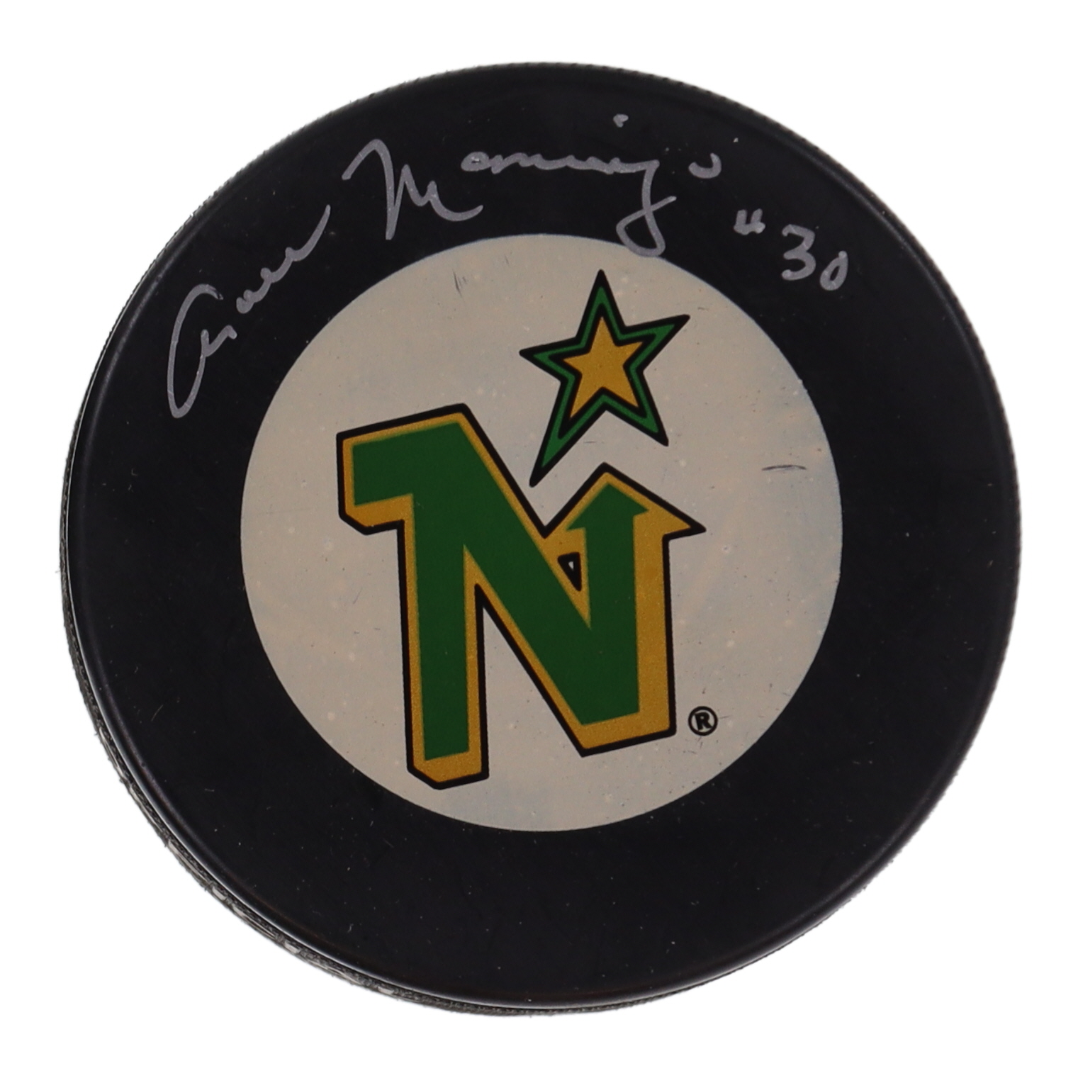 Cesare Maniago Signed North Stars Logo Hockey Puck (AJ's Sports World)