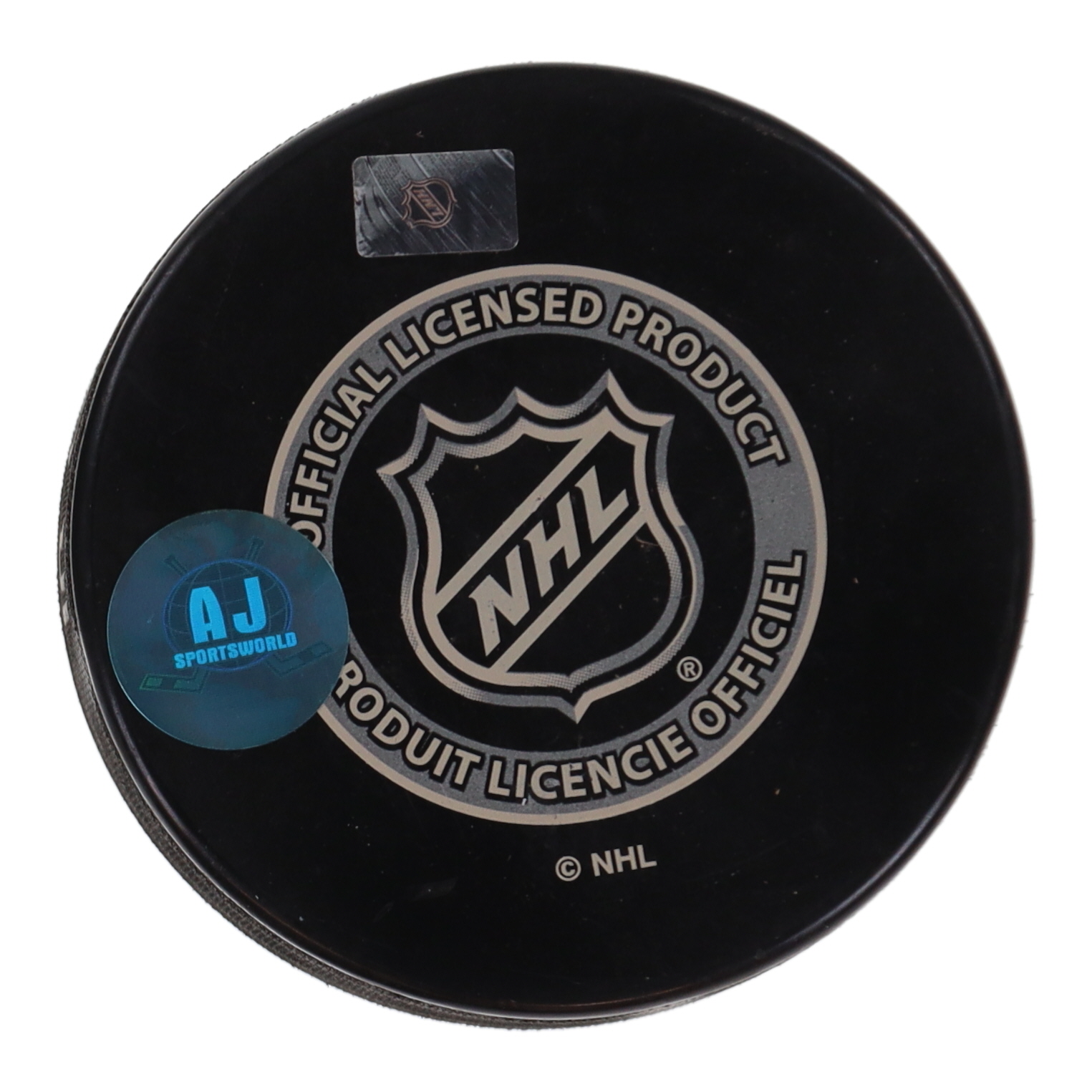 Minnesota North Stars logo hockey puck has been hand-signed by Cesare Maniago.
