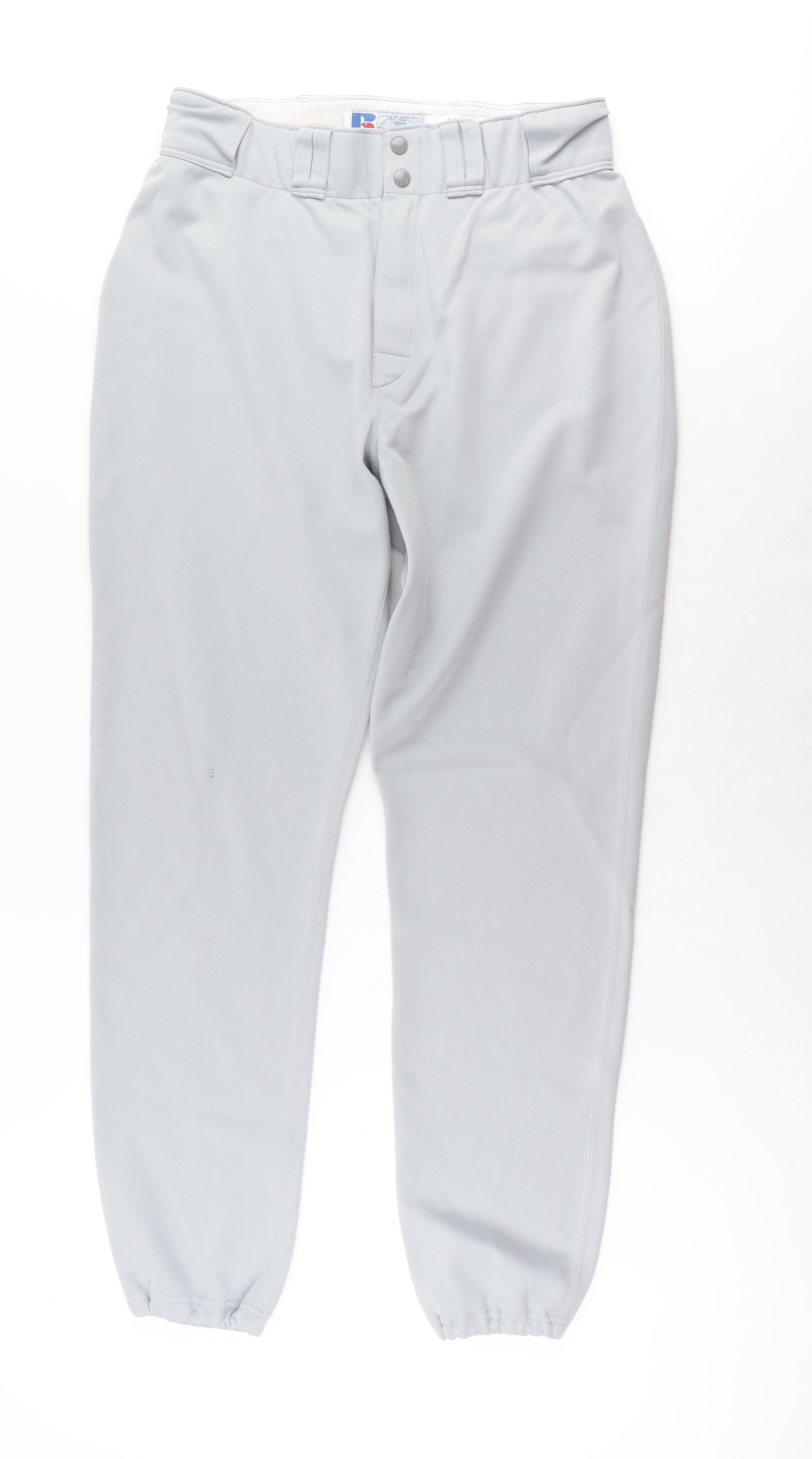 Russell on-field style pants. Everything is sewn on, size 38. These 2004 game used road grey pants have been worn by Mel Stottlemyre (New York Yankees).