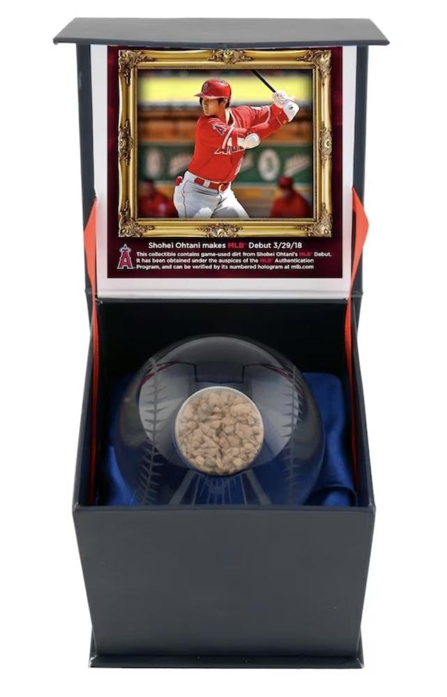 This crystal baseball display commemorates Shohei Ohtani's MLB Debut with the Los Angeles Angels. This ball includes game-used dirt from this historic event. Each crystal ball comes filled with actual game-used dirt from the stadium and shipped in a Fanatics Authentic gift box. It is officially licensed by Major League Baseball (MLB.)