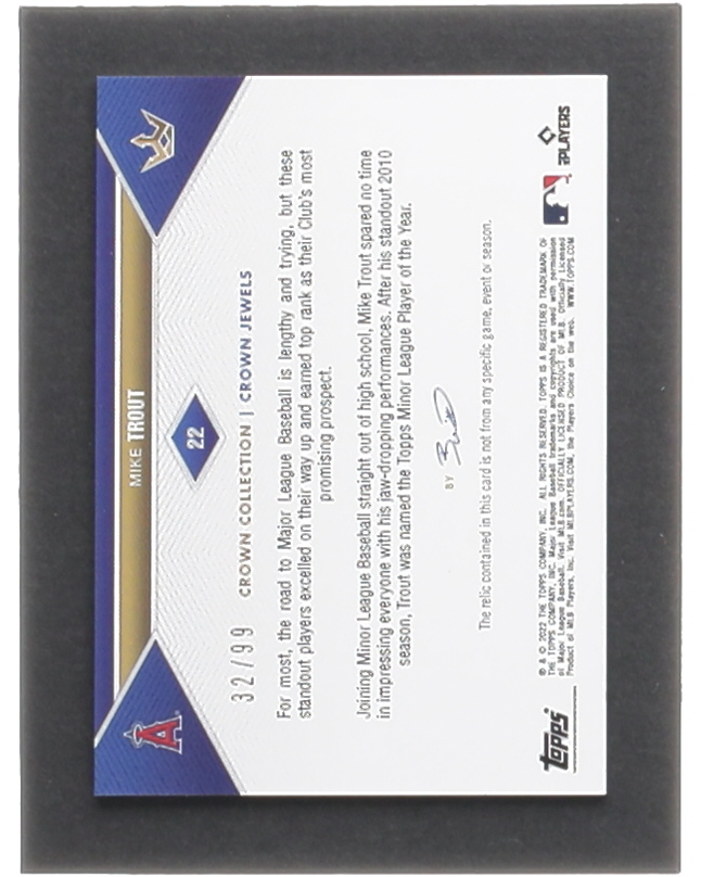 Mike Trout 2022 Topps X Bobby Witt Jr. Crown Collection Crown Jewels Relics Silver #21 #32/99