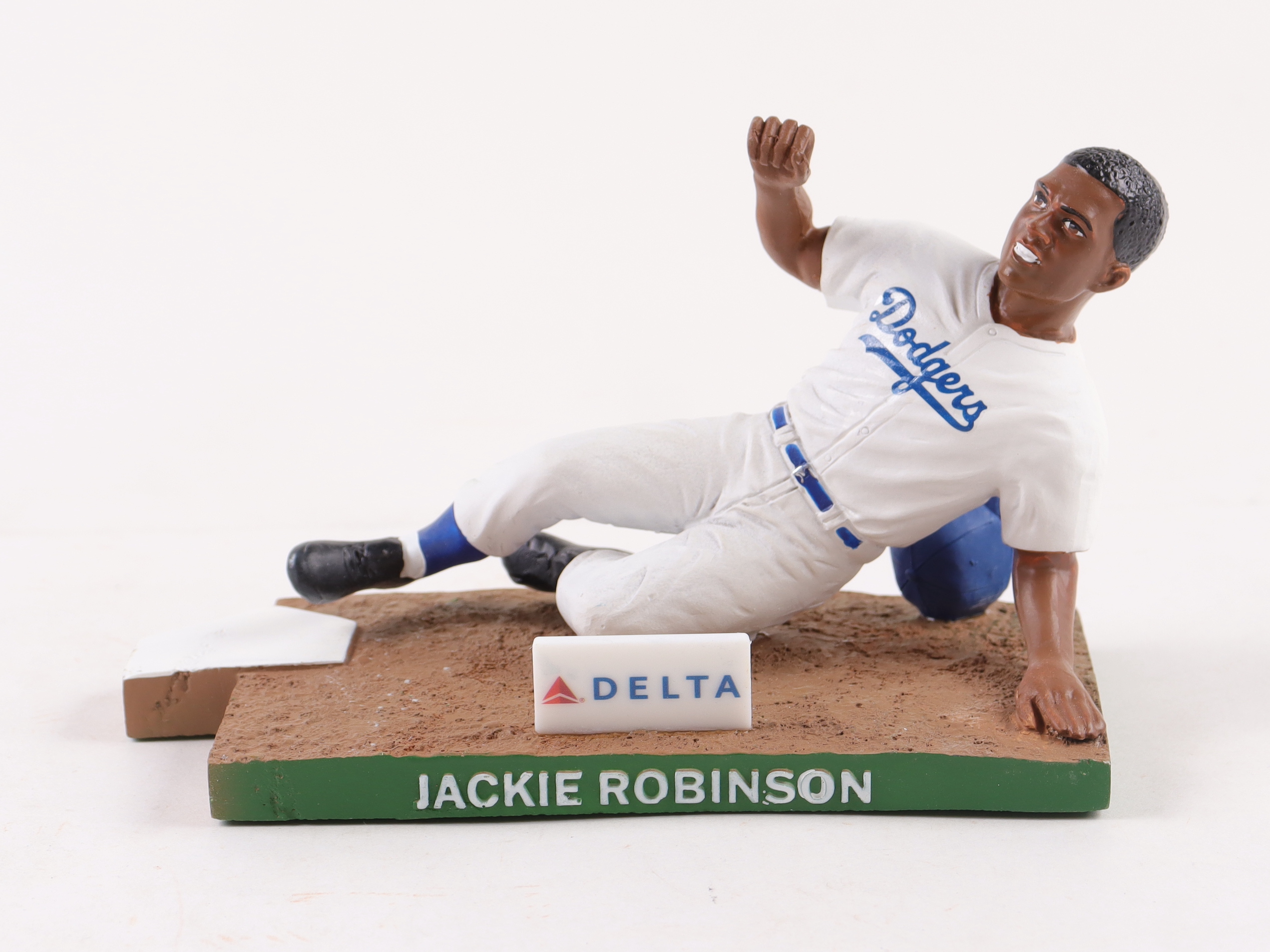 Figure measures approximately 8" in length. Features a Jackie Robinson figurine (D. 1972, Brooklyn Dodgers, HOF). Limited edition. Please note, the figurine is unsigned.