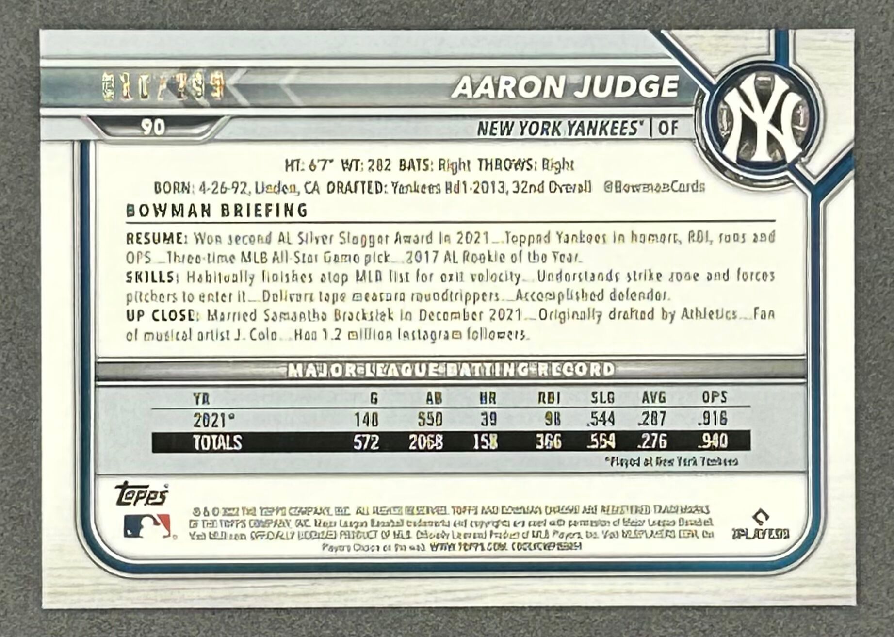 Aaron Judge 2022 Bowman Chrome Fuchsia Refractors #90 #010/299