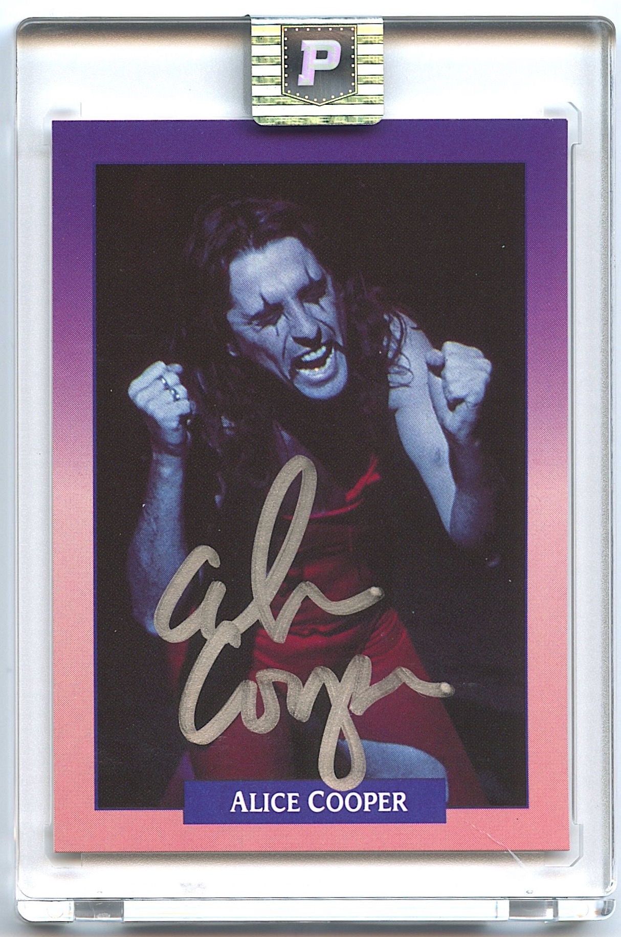 Trading card has been hand-signed by rock legend Alice Cooper.