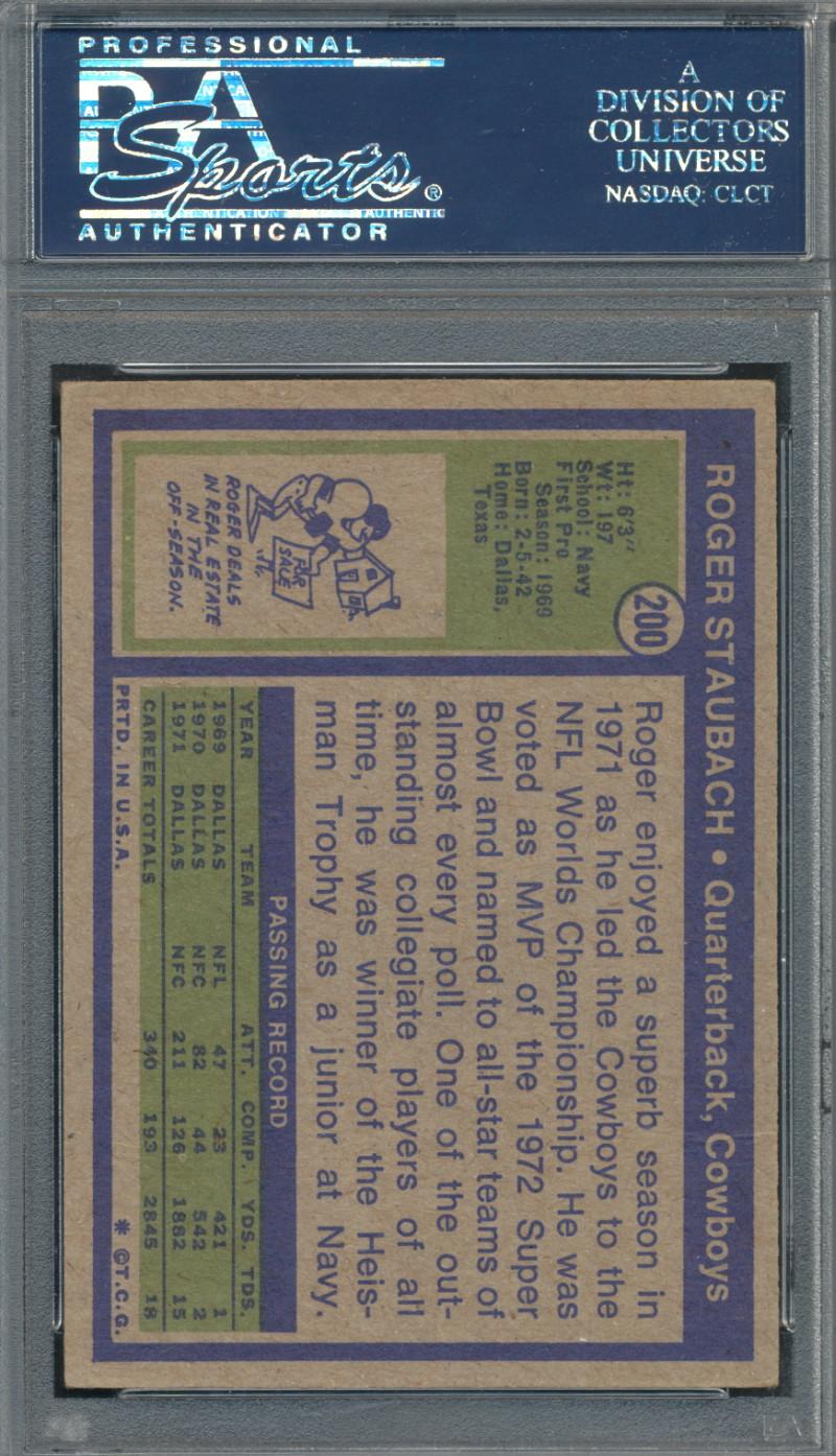 Roger Staubach Signed 1972 Topps #200 RC (PSA)