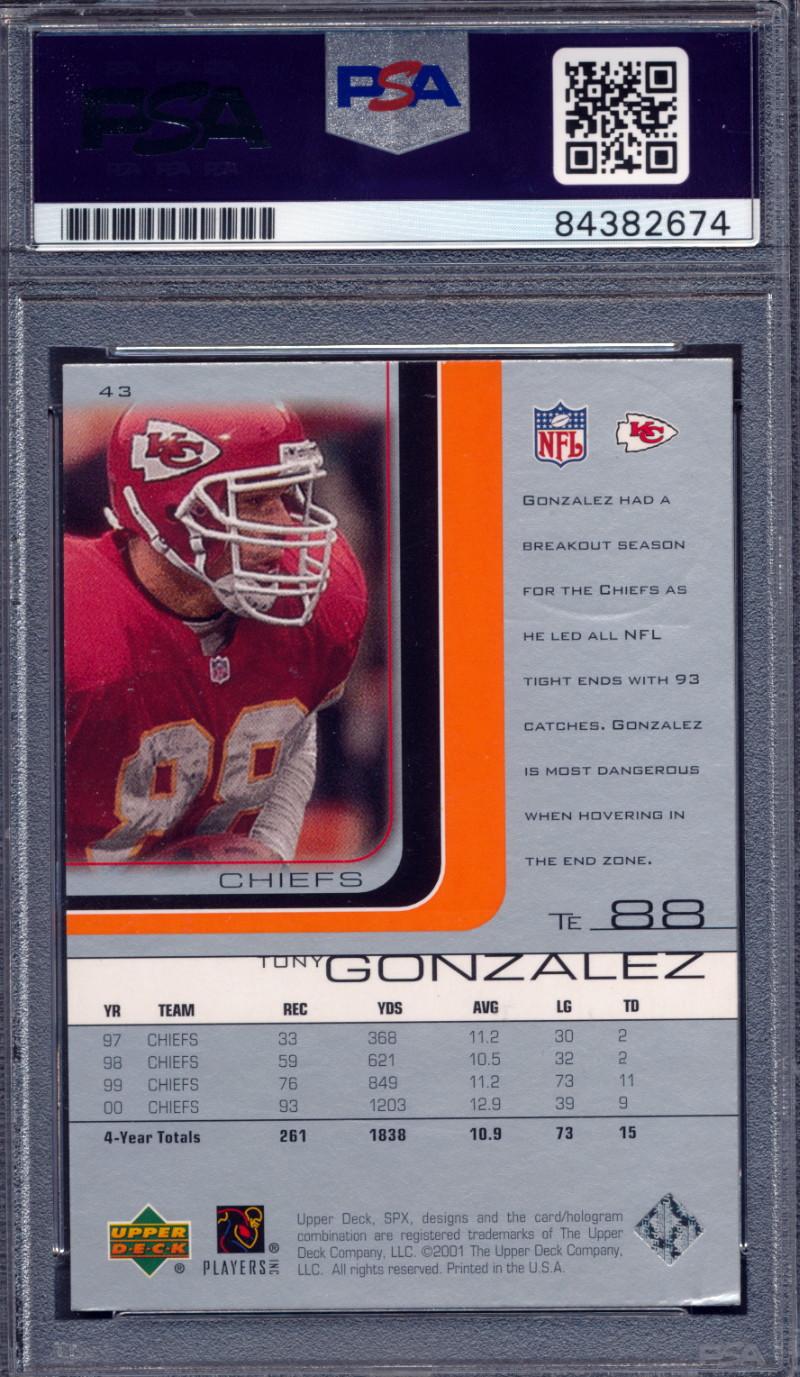 Tony Gonzalez Signed 2001 SPx #43 (PSA)