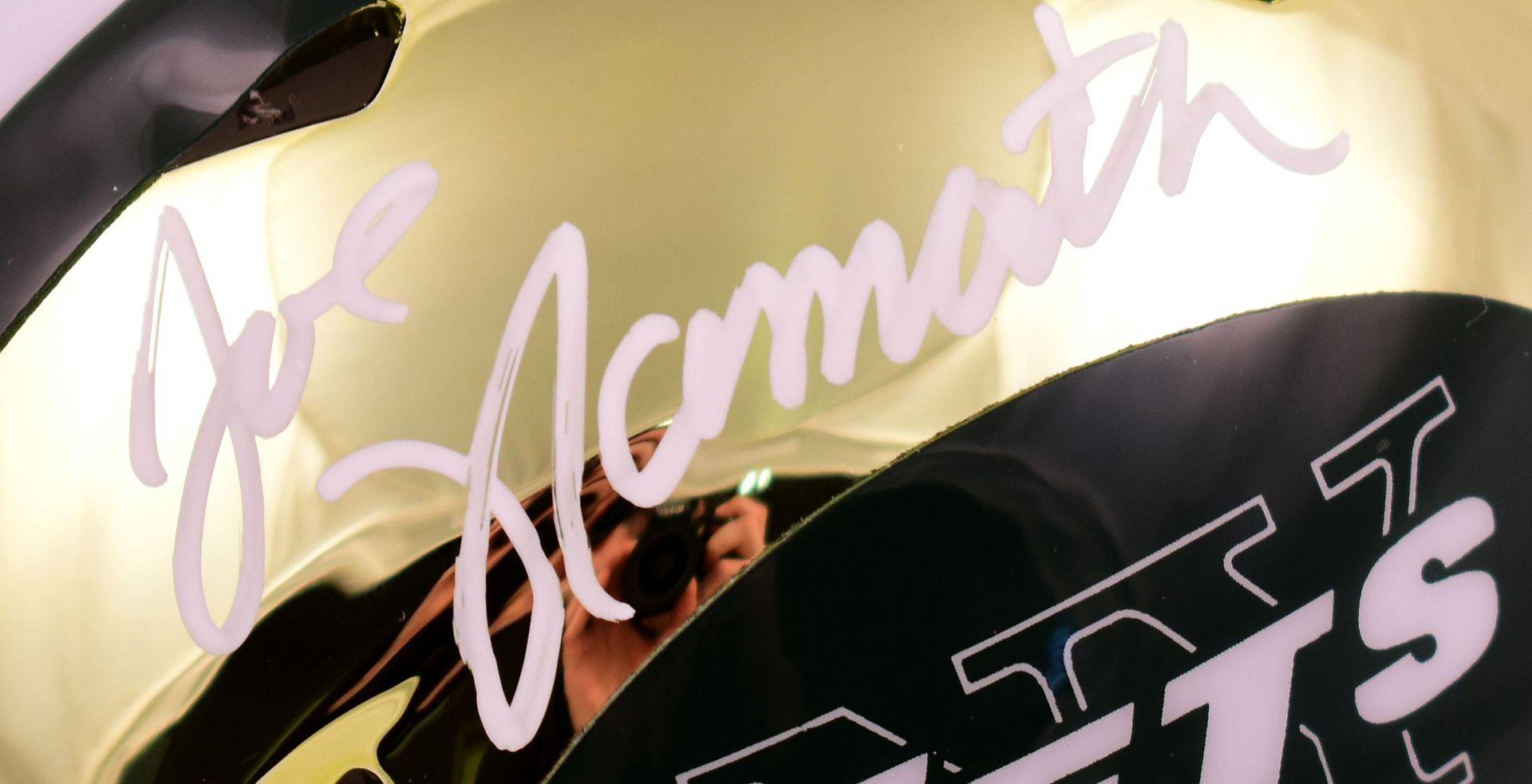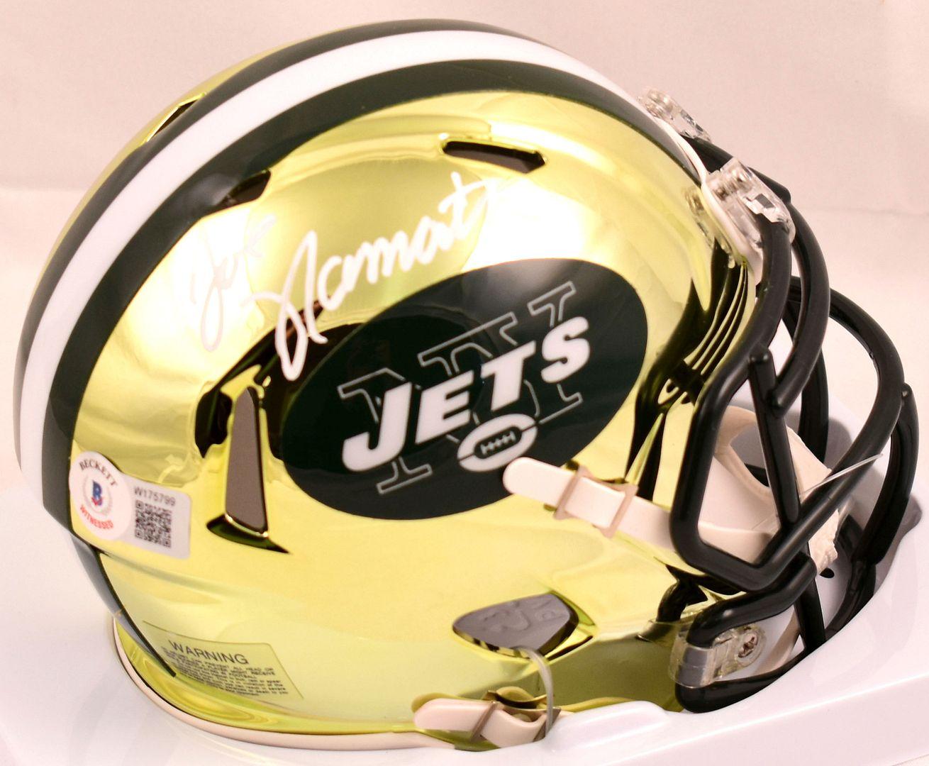 Riddell New York Jets Chrome Speed Mini Helmet. Hand-signed by Joe Namath (HOF).