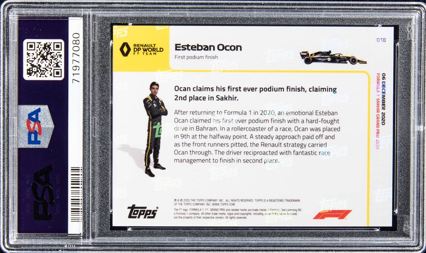 Esteban Ocon Signed 2020 Topps Now Formula 1 #18 (PSA 10)
