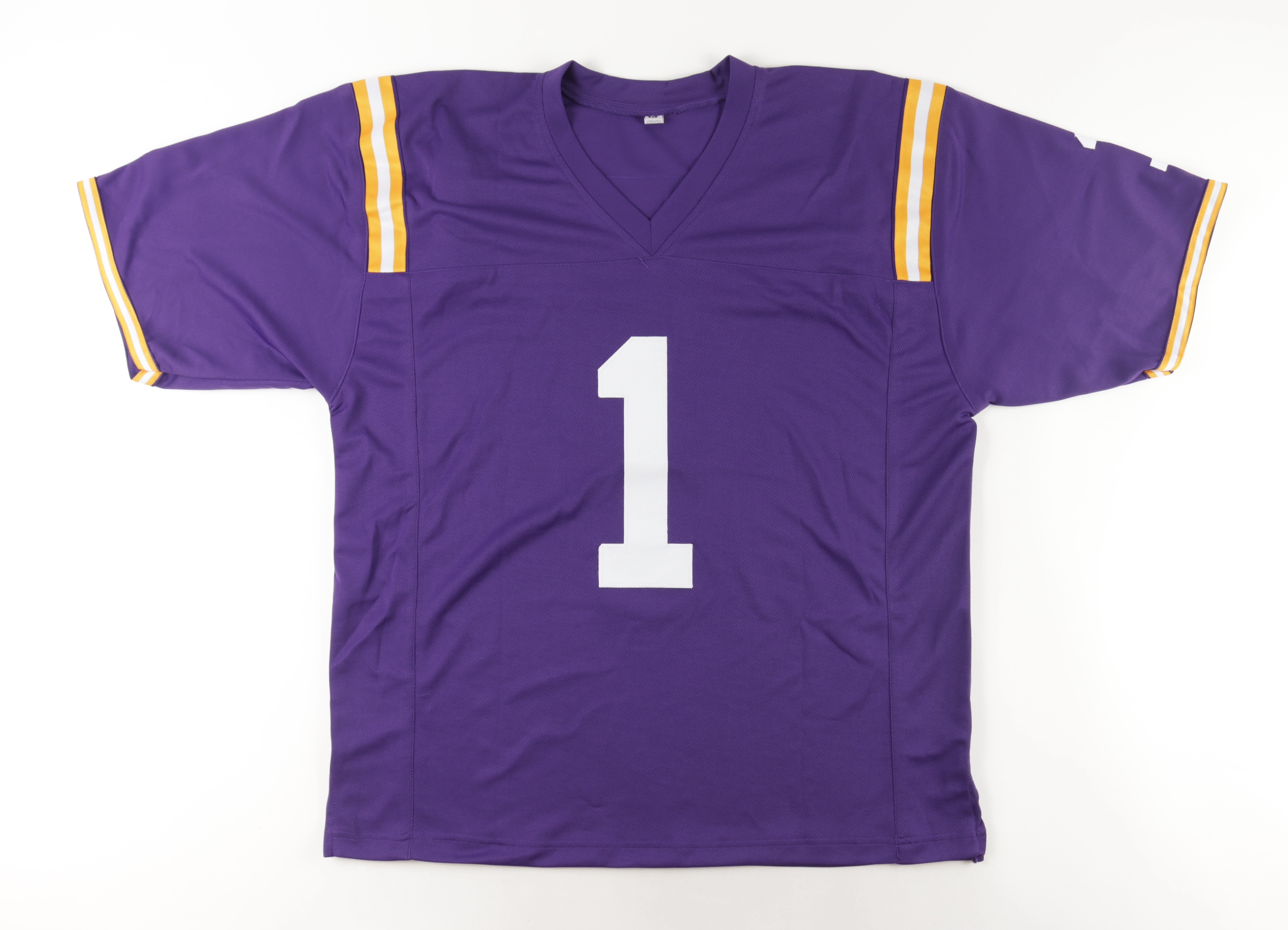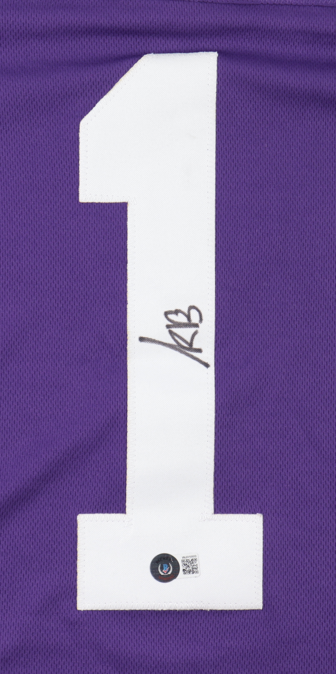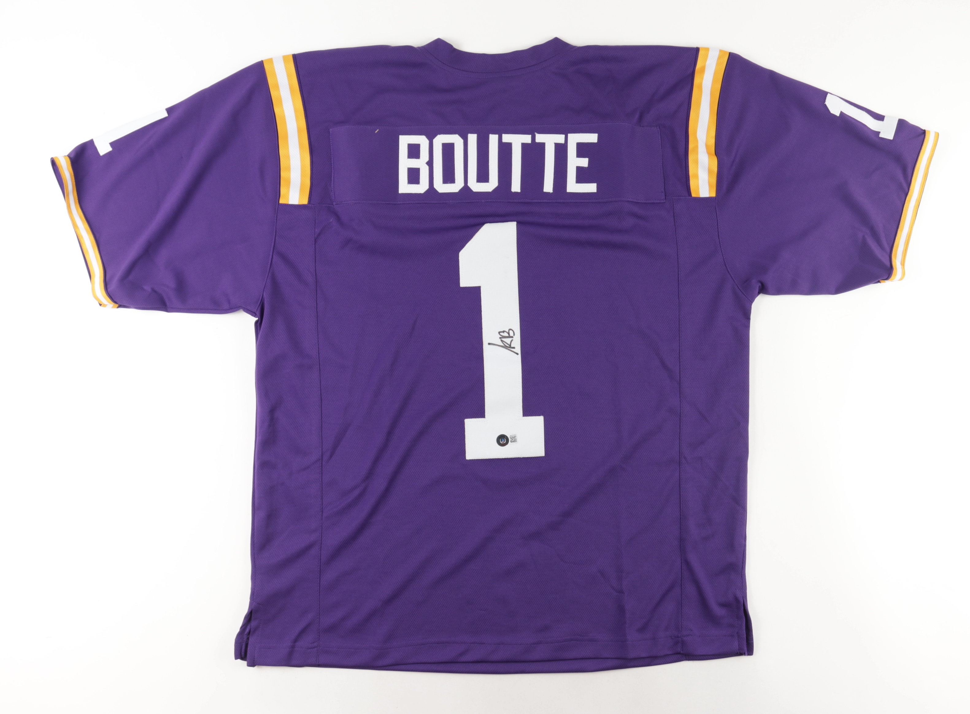 Custom on-field style jersey. Everything is sewn on, size XL. Hand-signed by Kayshon Boutte.