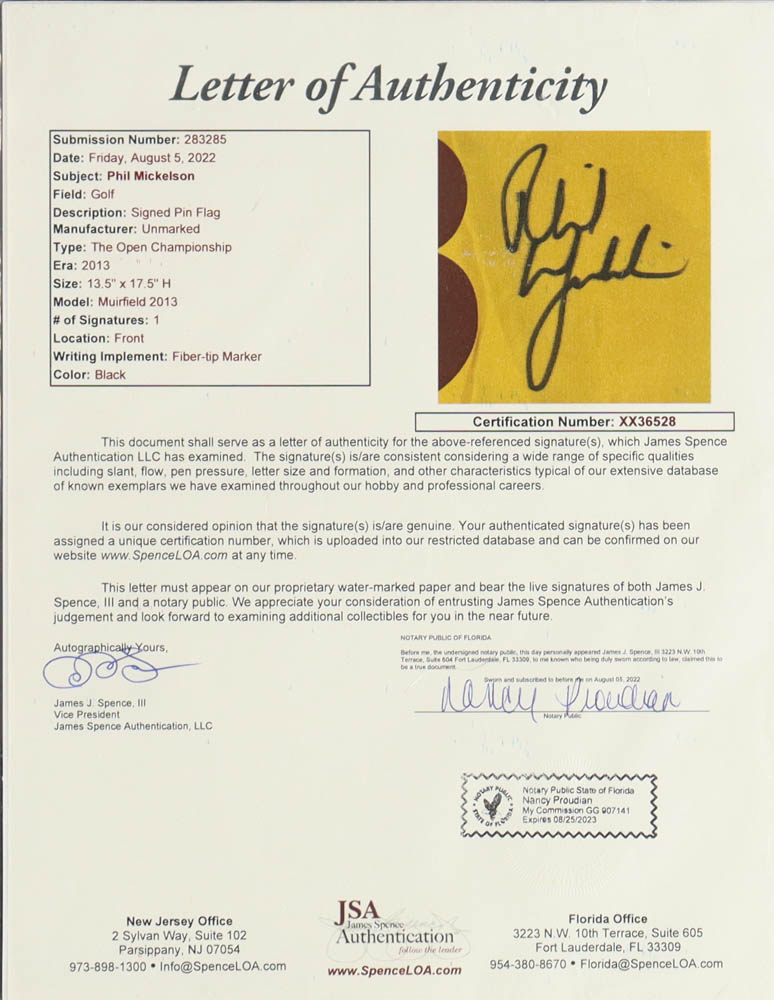 Phil Mickelson Signed The Open Championship Custom Framed Golf Flag (JSA)