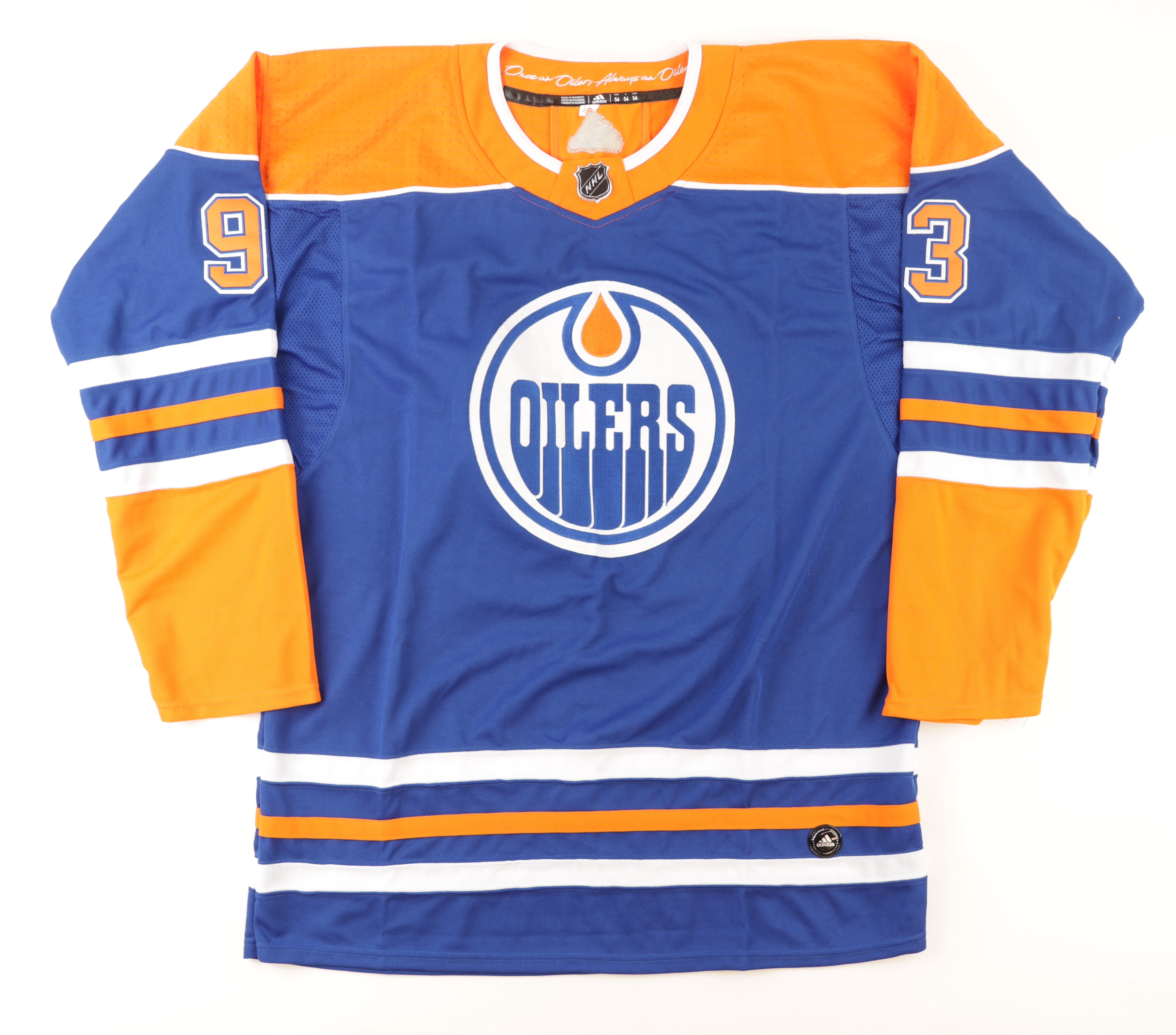 Adidas on-ice style jersey. Everything is sewn on, size 54. Has been hand-signed by Ryan Nugent-Hopkins (Edmonton Oilers).