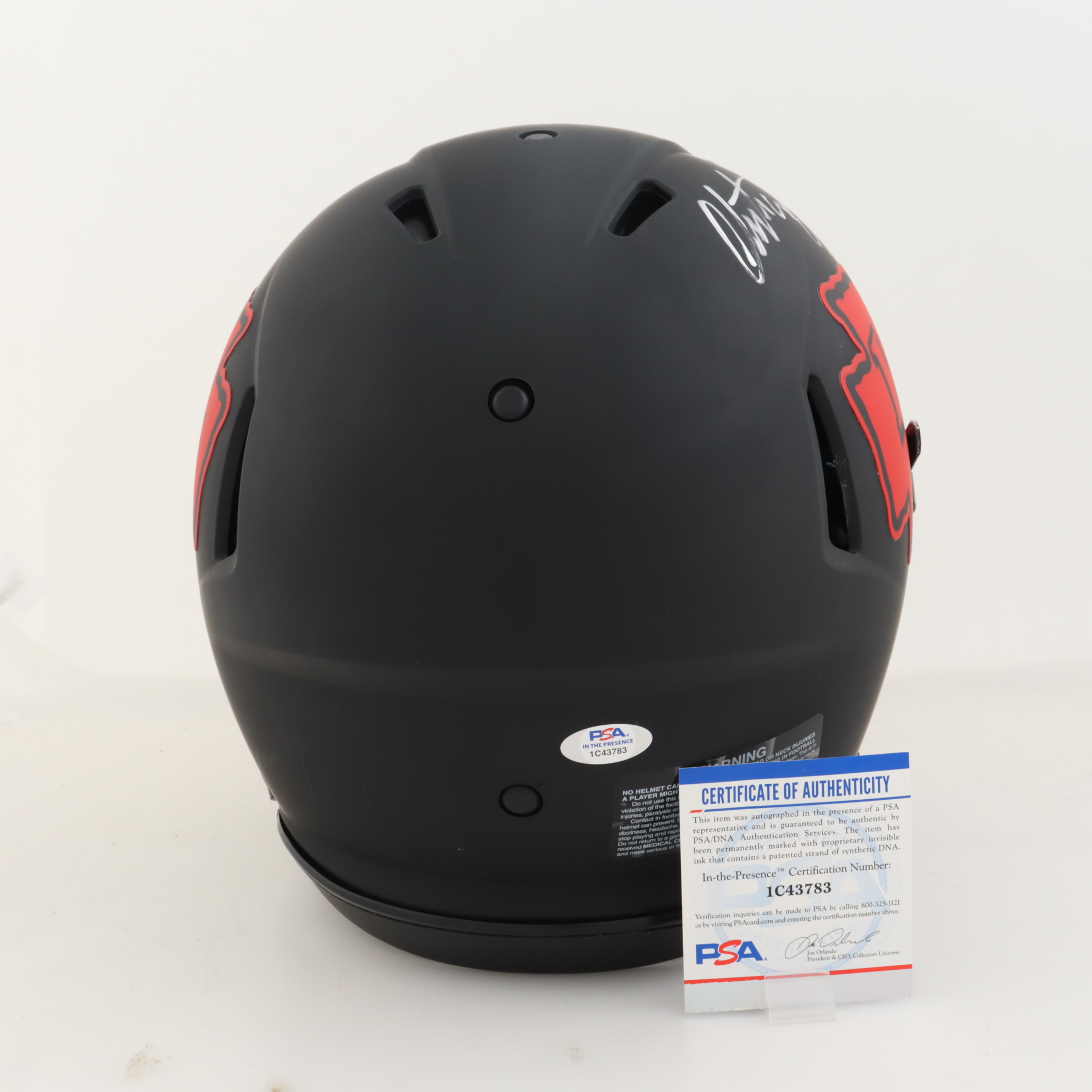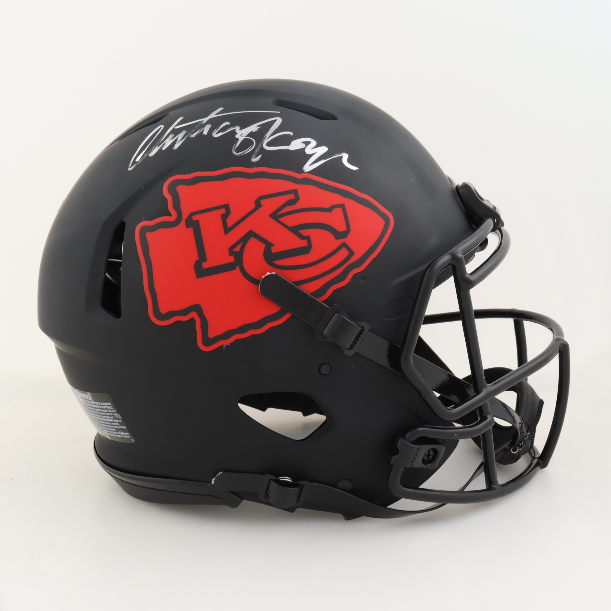 Riddell Kansas City Chiefs full-size authentic Eclipse Alternate Speed helmet. Has been hand-signed by Christian Okoye.