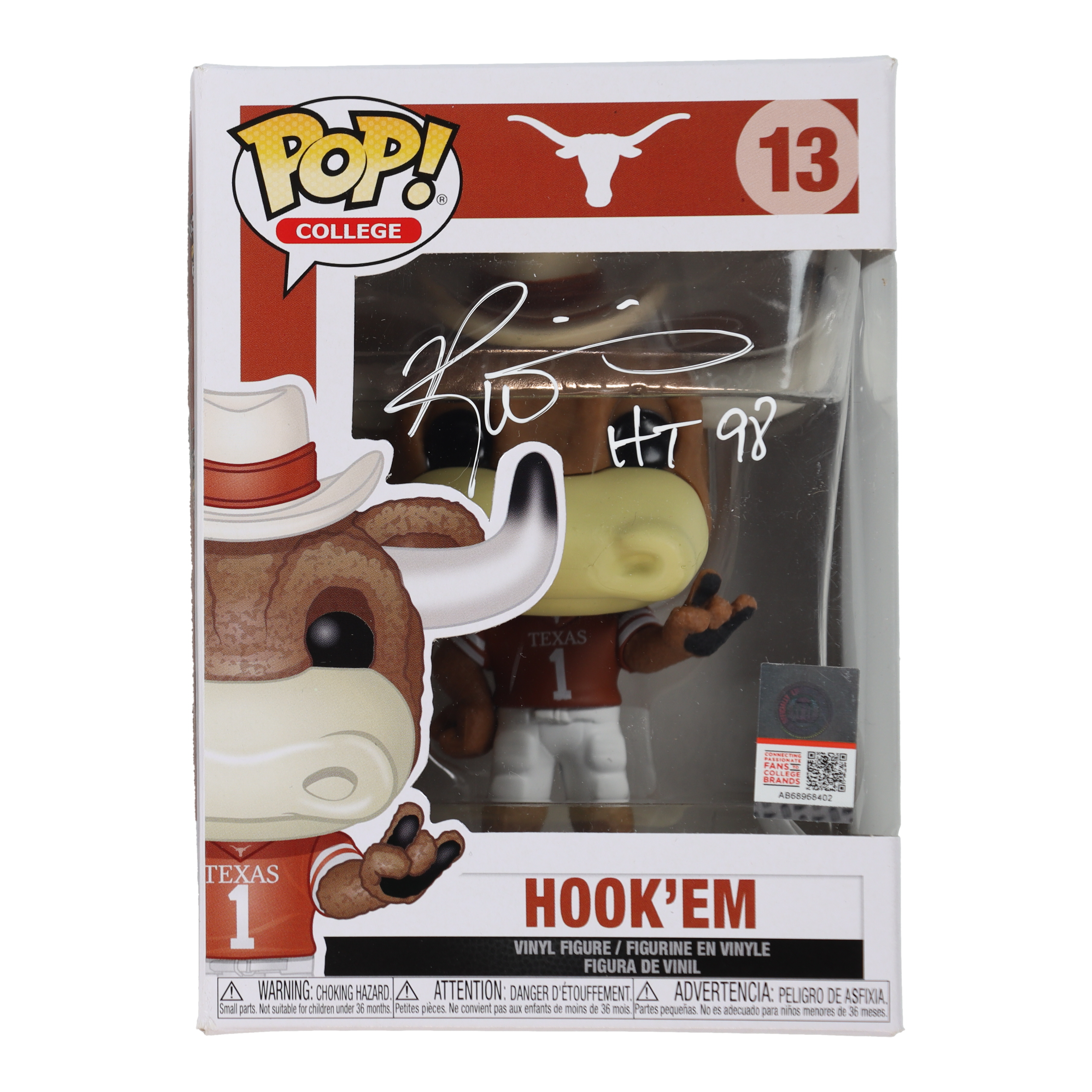 Ricky Williams Signed "Texas Longhorns" #13 Hook'em Funko Pop! Vinyl Figure Inscribed "HT 98" (PSA)
