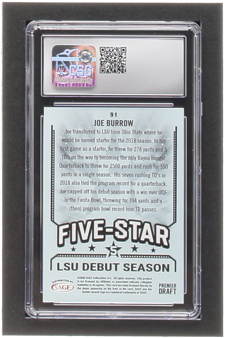 Joe Burrow 2020 SAGE HIT Green #91 RC (CSG 9)