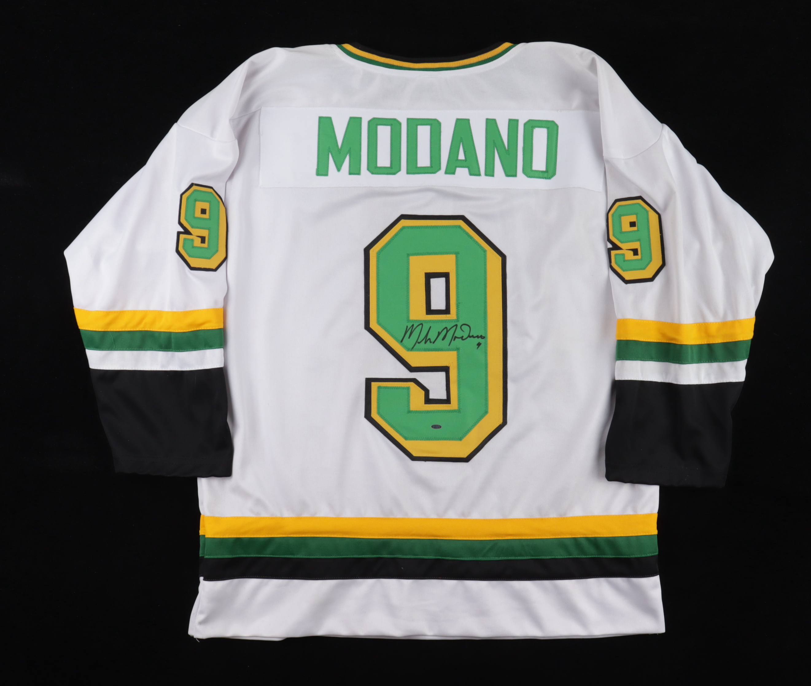Custom jersey. Everything is sewn on, size XL. Has been hand-signed by Mike Modano (HOF).