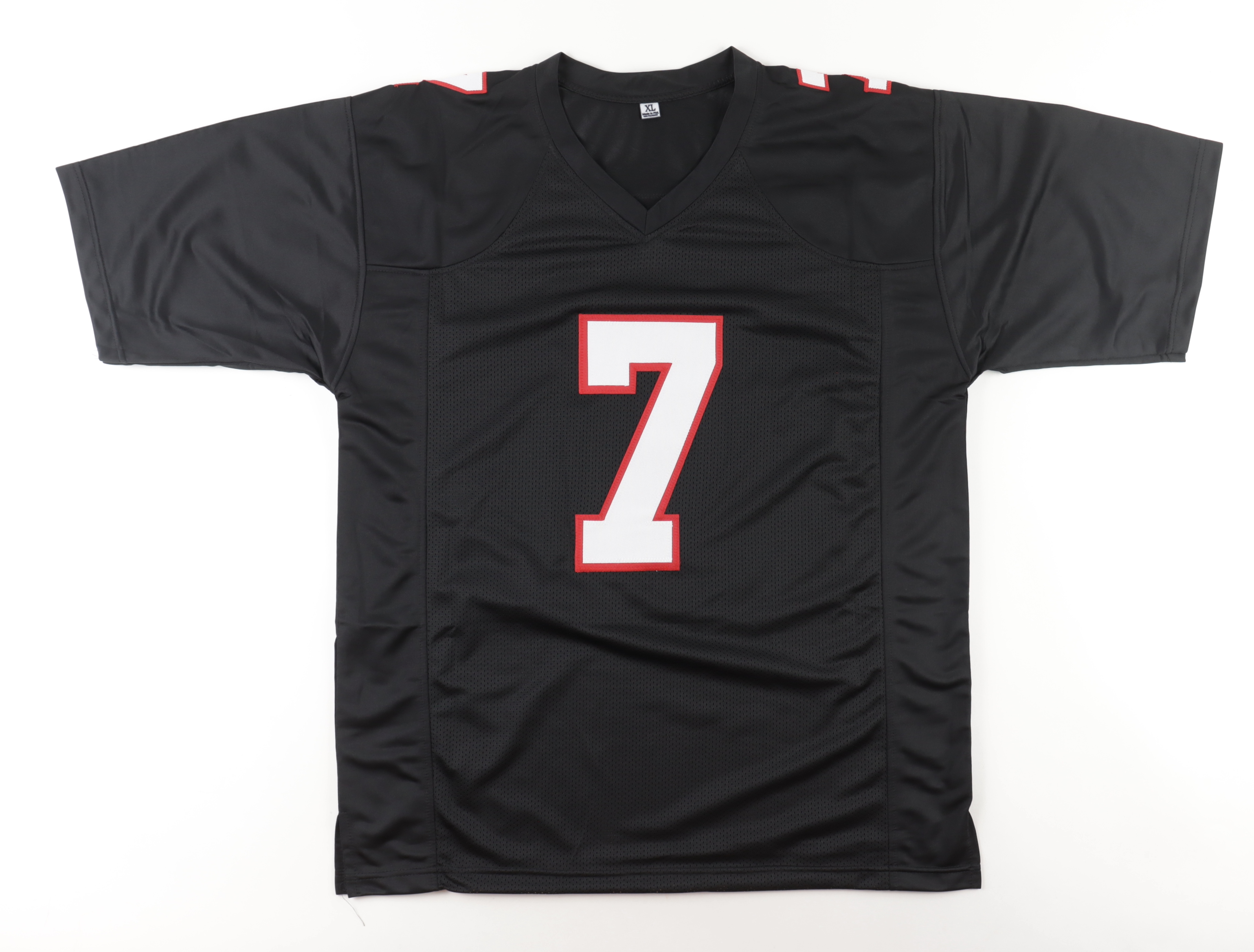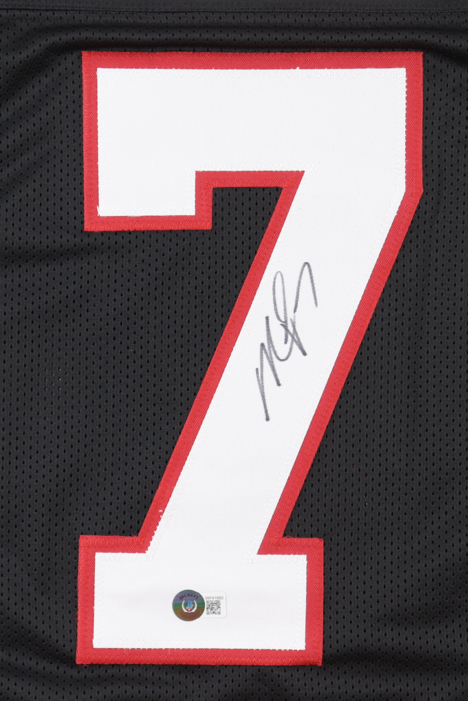 Custom on-field style jersey. Everything sewn on, size XL. Hand-signed by Michael Vick.