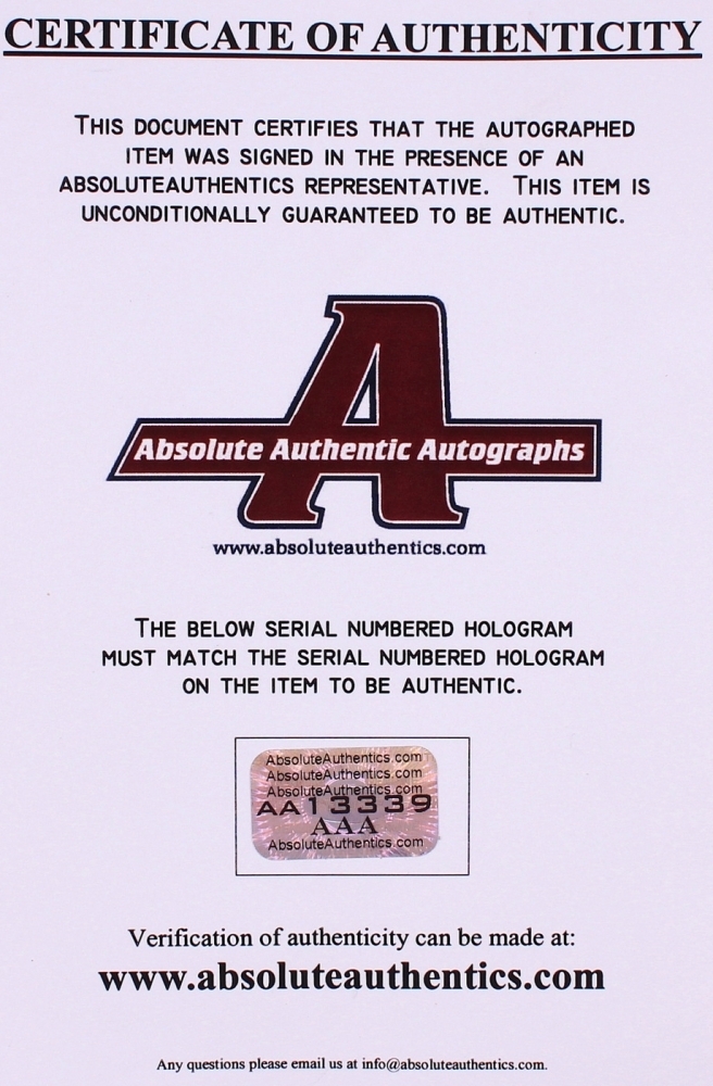 The autograph includes an official Absolute Authentics (AAA) hologram and matching COA for authenticity purposes.Authentication: AAA COA