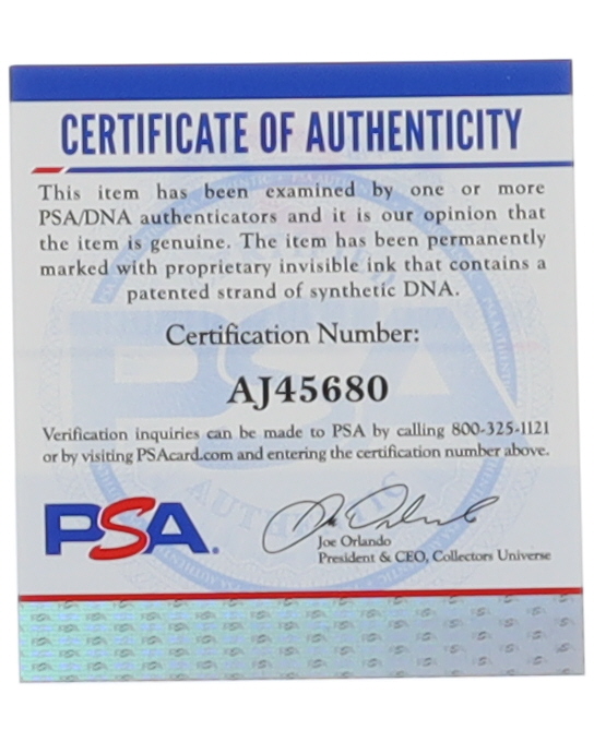 The autograph includes an official PSA/DNA hologram and matching COA for authenticity purposes.