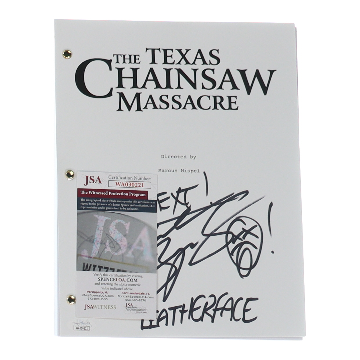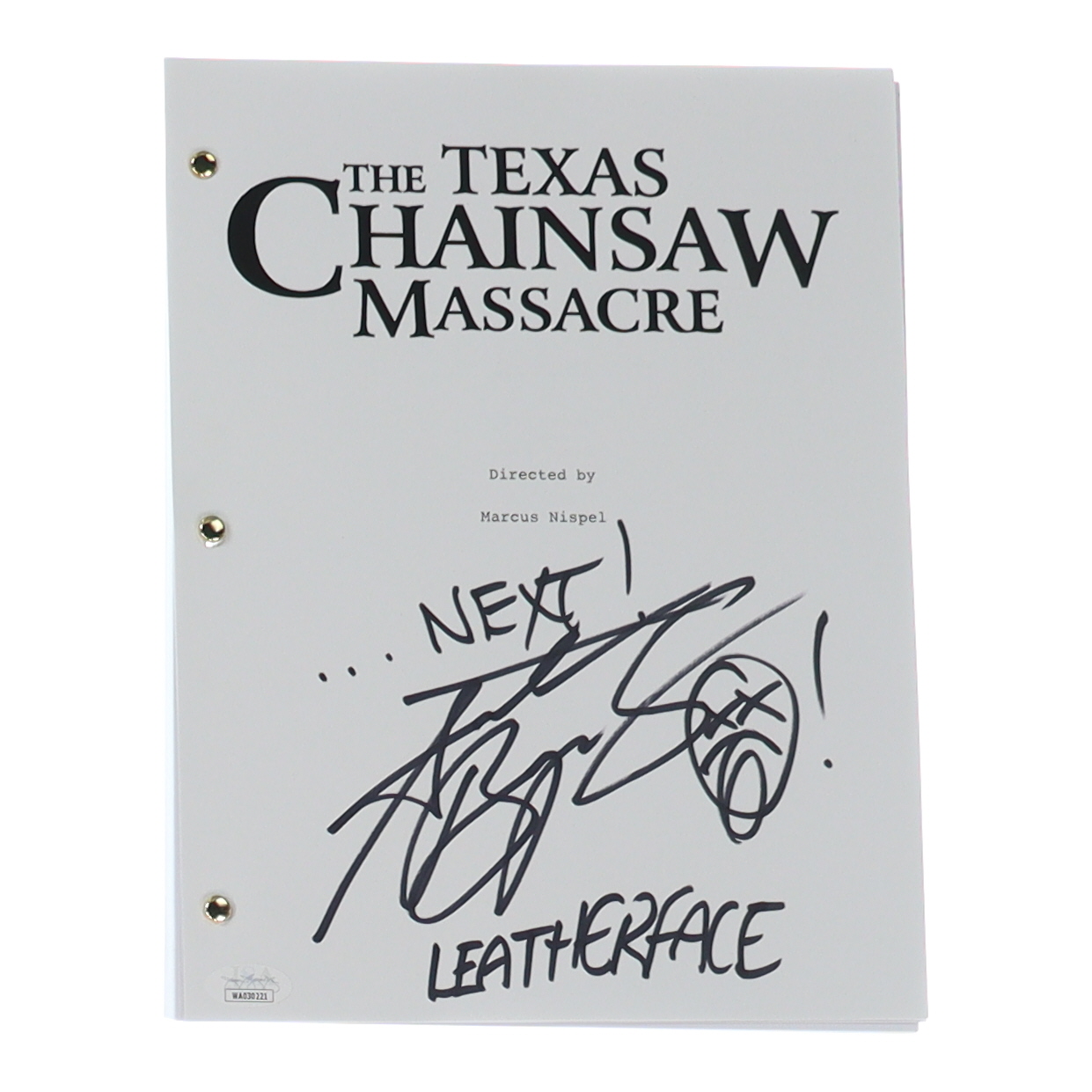 Andrew Bryniarski Signed "The Texas Chainsaw Massacre" Movie Script Inscribed "...NEXT!" & "Leatherface" with Hand-Drawn Sketch (JSA)