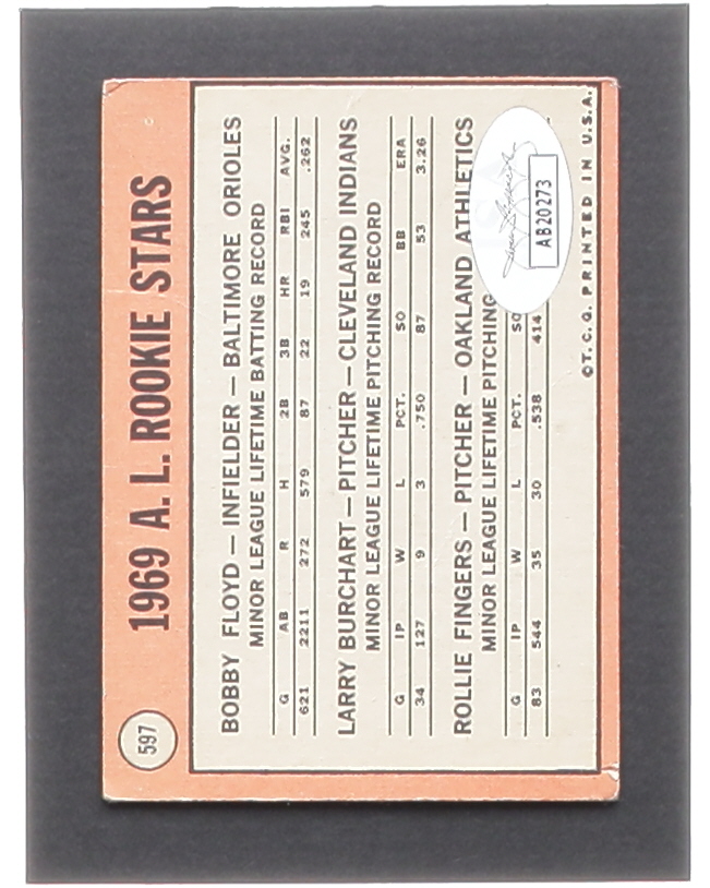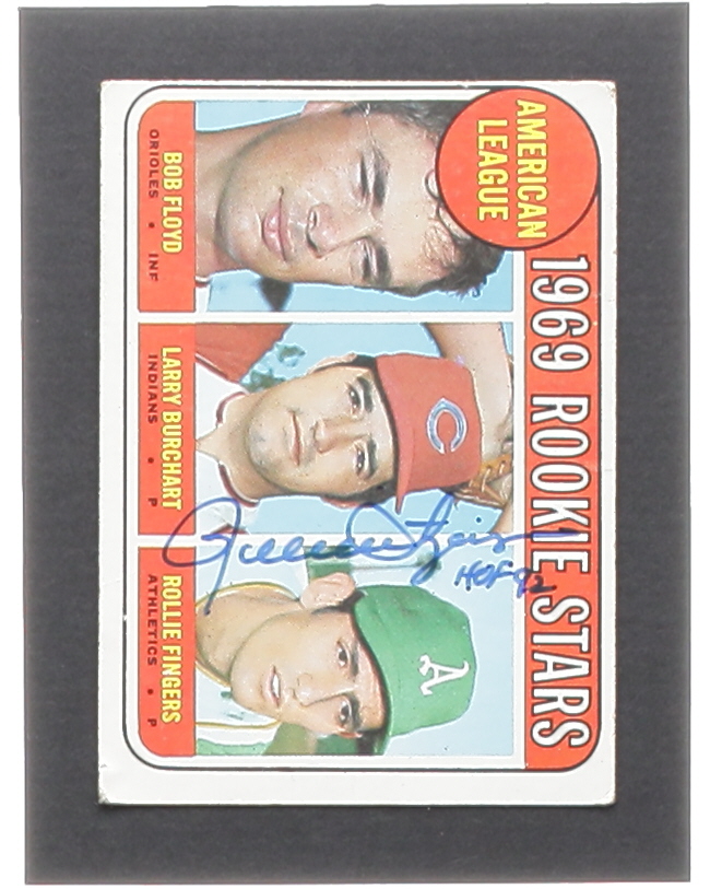 Rollie Fingers Signed 1969 Topps #597 Rookie Stars / Bob Floyd / Larry Burchart / Rollie Fingers RC Inscribed "HOF 92" (JSA)