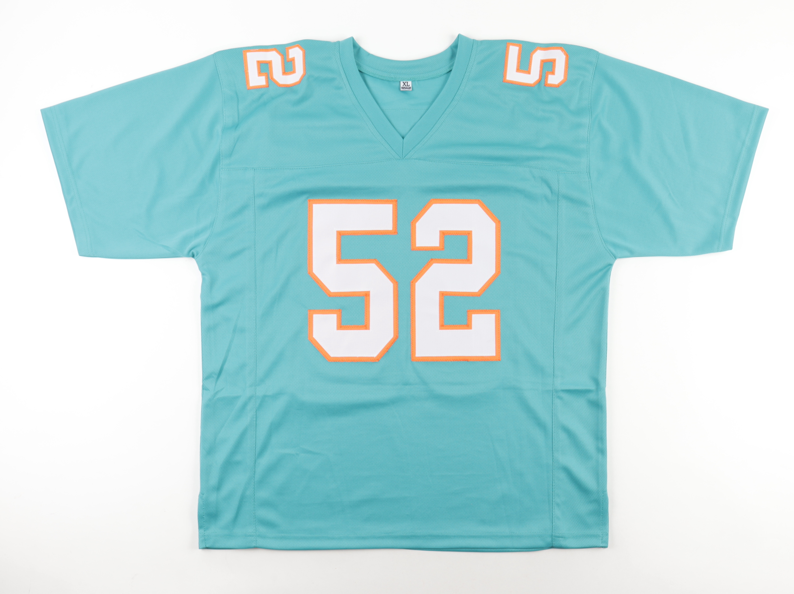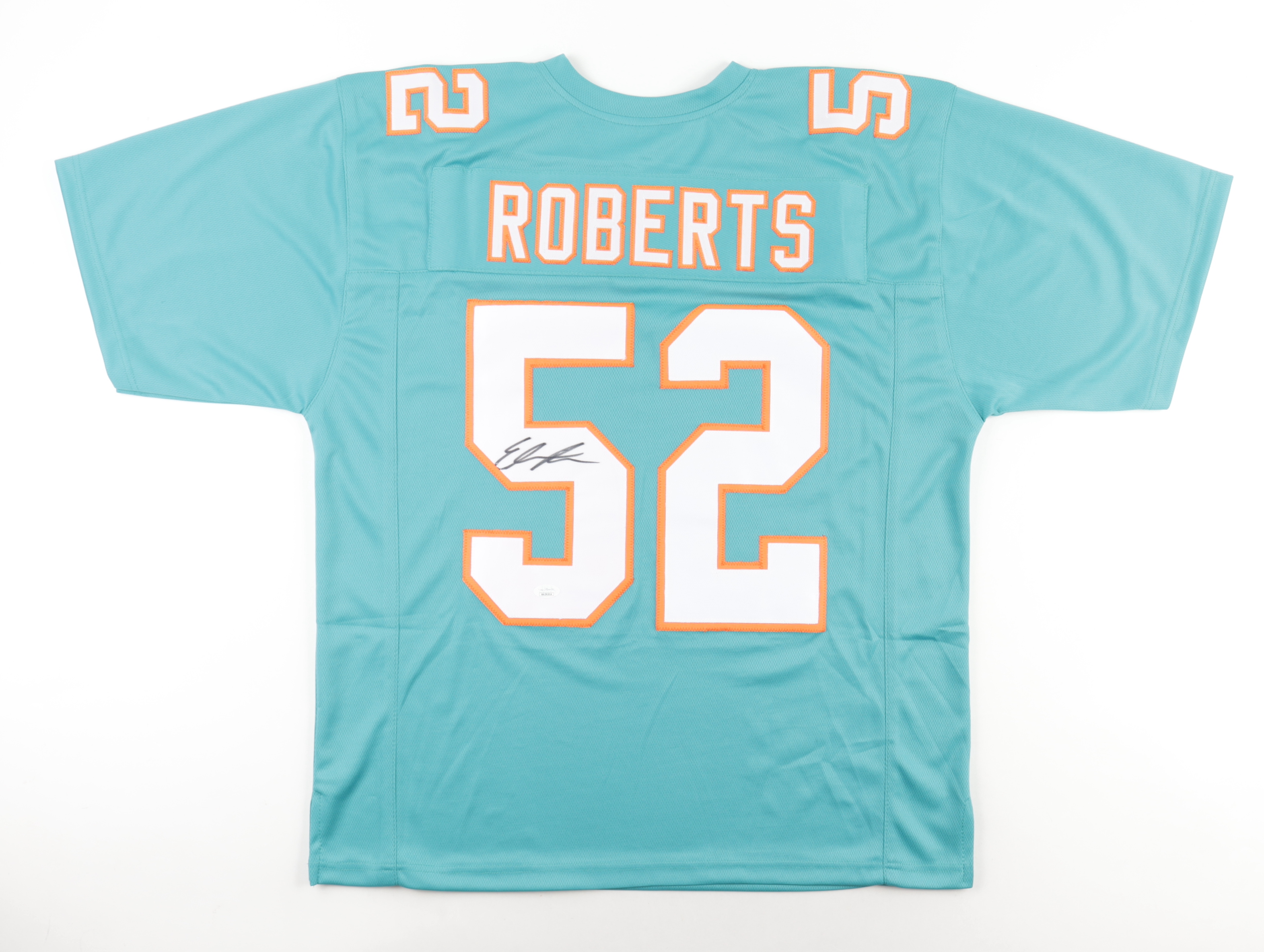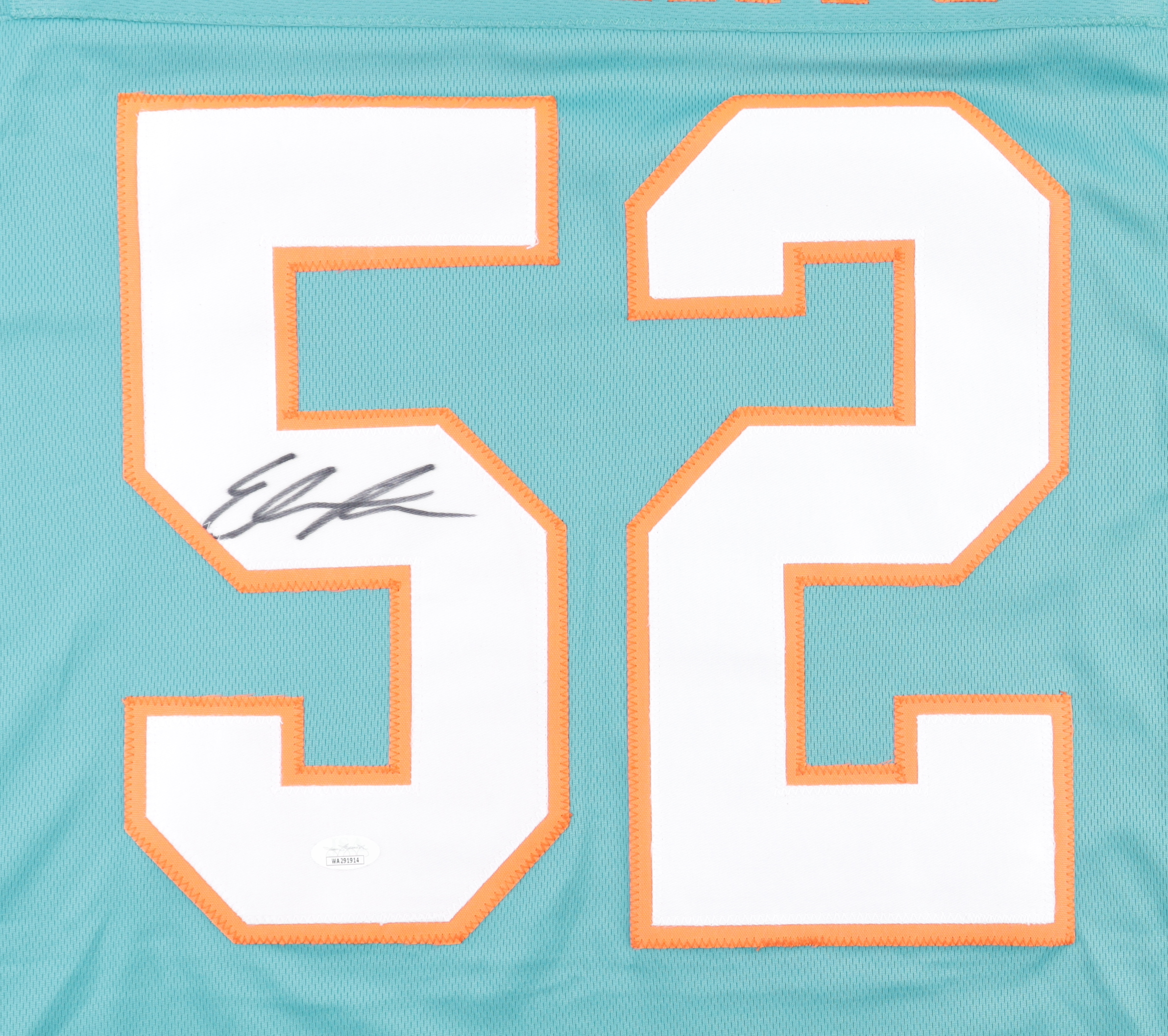 Custom on-field style jersey. Everything is sewn on, size XL. Hand-signed by Elandon Roberts.