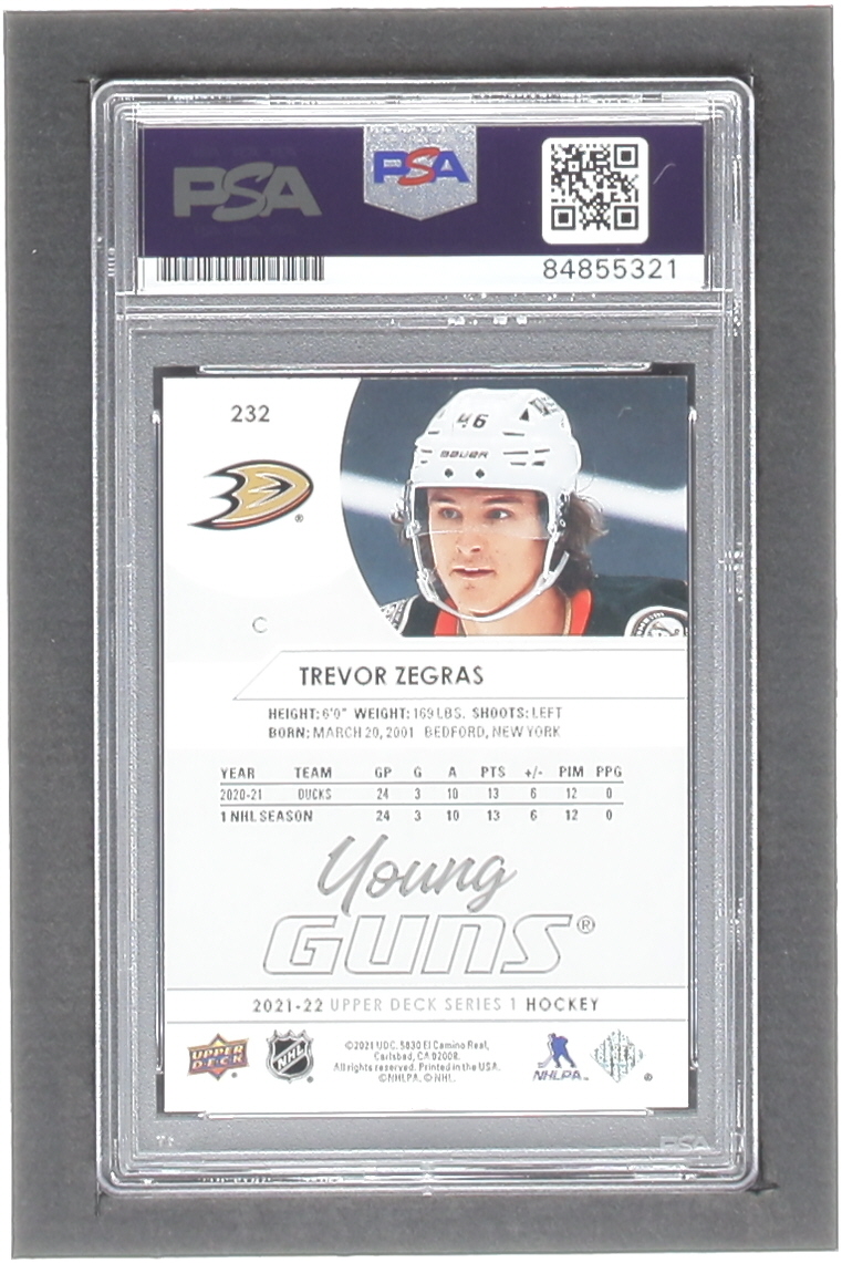 Trevor Zegras Signed 2021-22 Upper Deck #232 YG RC (PSA)